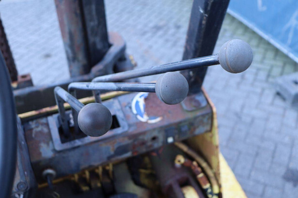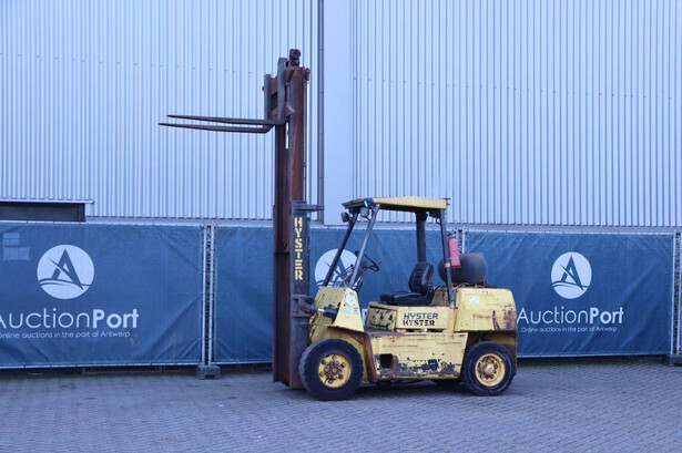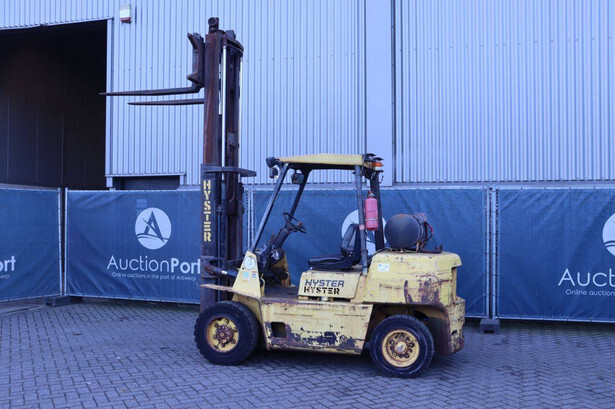 Brand: Hyster Type: H4.00XLS-6 Serial number: F005A11748M Year of construction: 1991 Fuel: LPG Mast type: Duplex Sideshift: No Lifting capacity: 3900 kg Lifting height: 3070 mm Operating hours read: 4889 h Machine weight: 5810 kg Tires: Solid tires Color: yellow