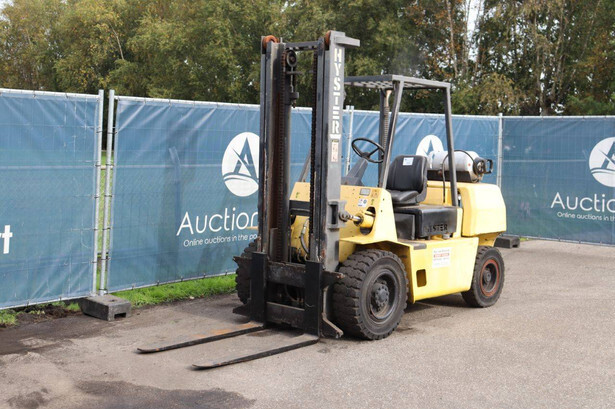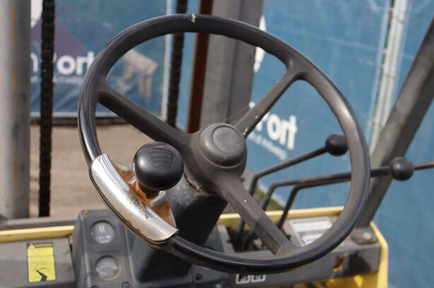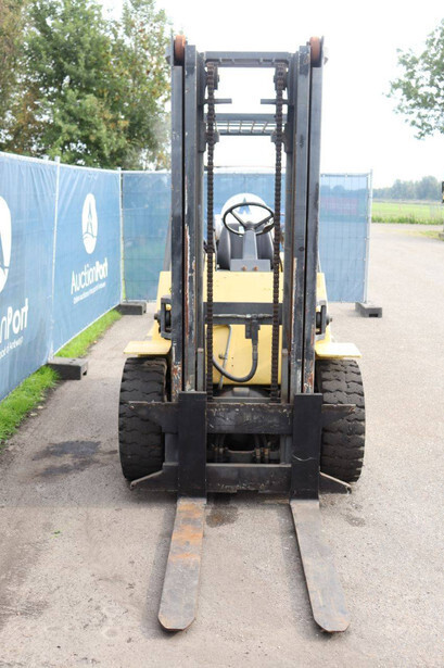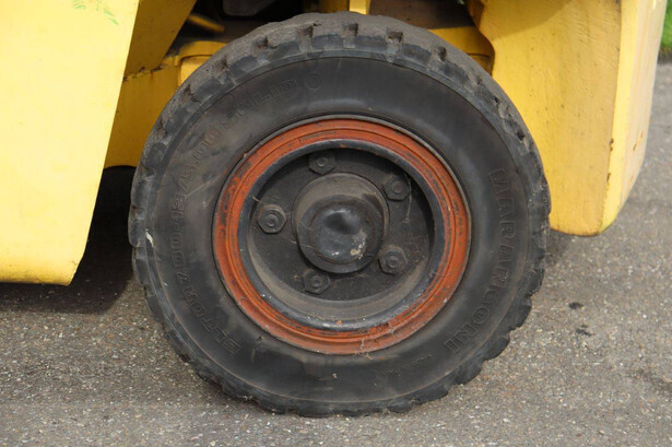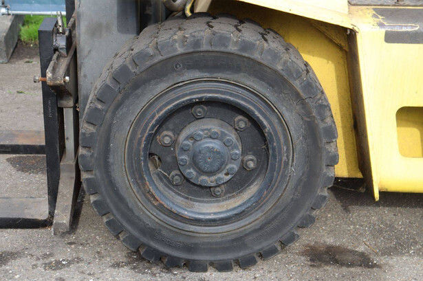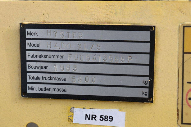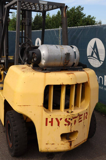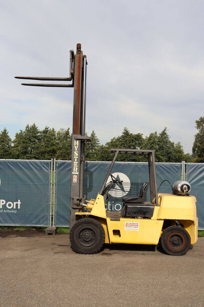 Brand: Hyster Type: H 4.0-0 XL/5 Serial number: F005A13568P Year of construction: 1993 Fuel: LPG Mast type: Duplex Sideshift: No Lifting capacity: 4000 kg Lifting height: 3650 mm Operating hours read: 1871 h Machine weight: 5800 kg Tires: Solid tires Color: yellow