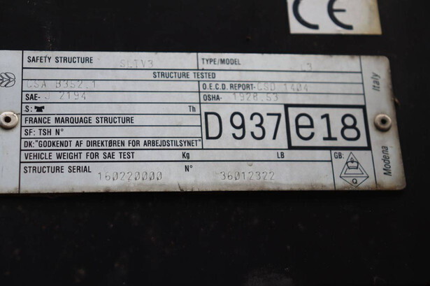 Options: Rearview mirror Electronic display Closed cabin Climate control Radio Driving lights Windshield wipers Work lighting