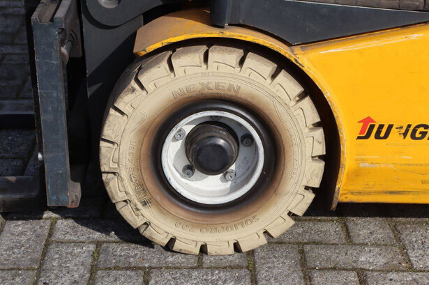 Brand: Jungheinrich Type: EFG 110k Serial number: FN311989 Year of construction: 2004 Fuel: Electric Mast type: Duplex Sideshift: Yes Lifting capacity: 1000 kg Lifting height: 4000 mm Recorded operating hours: Not known Machine weight: 2632 kg Tires: Non-marking tires Color: yellow
