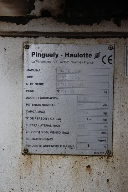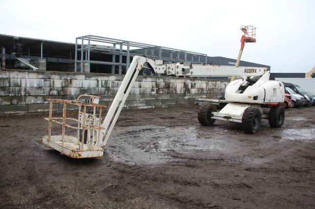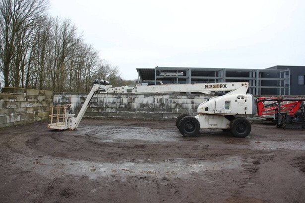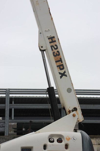 Brand: Haulotte Type: H23TPX Serial number: TD103596 Year of construction: 2005 Fuel: Diesel Lifting capacity: 230 kg Working height: 22.6 m Recorded operating hours: 1032 h Machine weight: 3110 kg Undercarriage: Wheels Type: Telescopic boom lift Tires: Pneumatic tires Color: white
