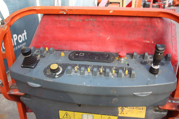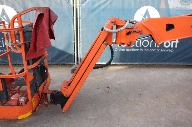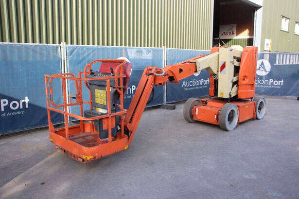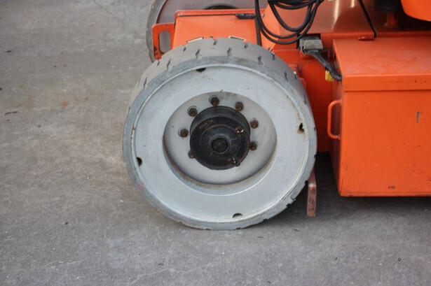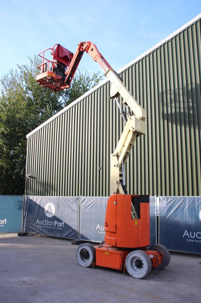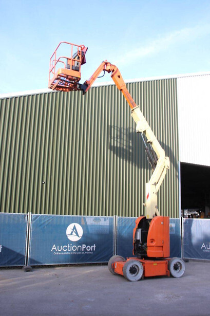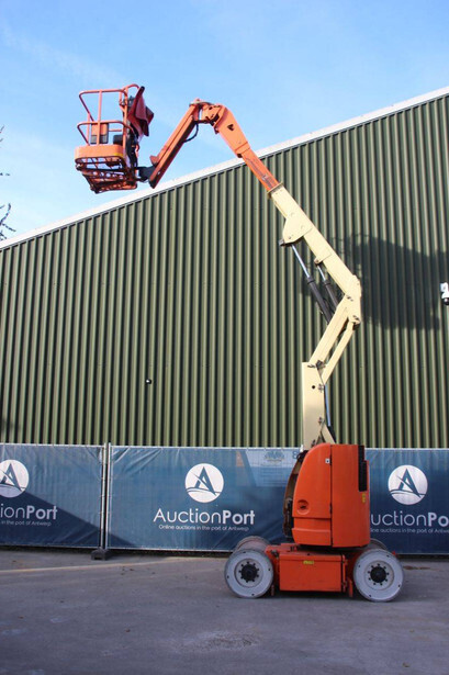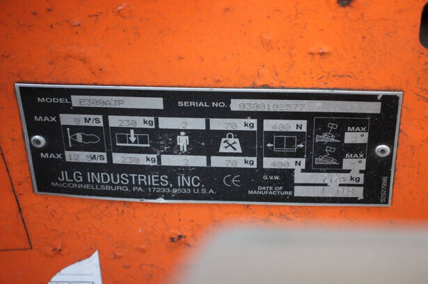Brand: JLG Type: E300AJP Serial number: 0300102577 Year of construction: 2006 Fuel: Electric Lifting capacity: 230 kg Working height: 11 m Operating hours read: 20426 h Machine weight: 7178 kg Chassis: Wheels Type: Articulated boom lift Tires: Solid tires Color: orange