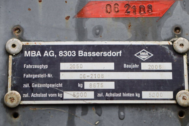 Brand: MBA Type: 2050 Serial number: 06-2108 Year of construction: 2006 Fuel: Diesel Engine power: 54.0 kW Operating hours read: 1142 h Machine weight: 8675 kg Chassis: Wheels Color: yellow