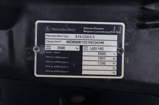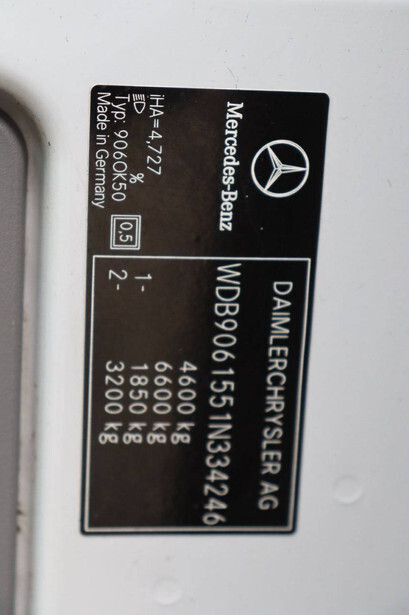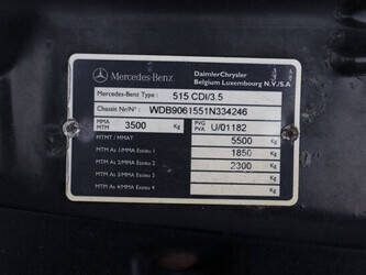 Brand: Mercedes-Benz Model: 515 CDI/3.5 Chassis number: WDB9061551N334246 Date of first registration: 2007 Fuel: Diesel Engine power: 150 HP Transmission: Manual Cylinder capacity: 2148 cc Mileage reading: Not known Color: white