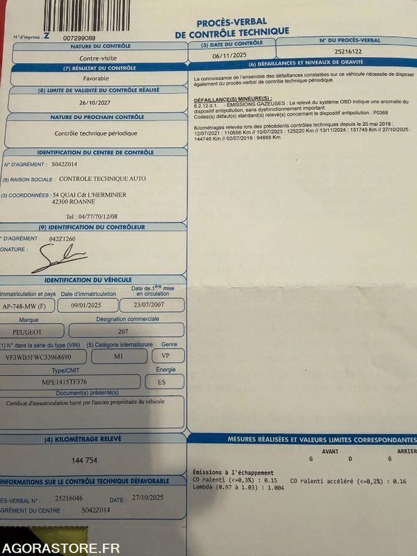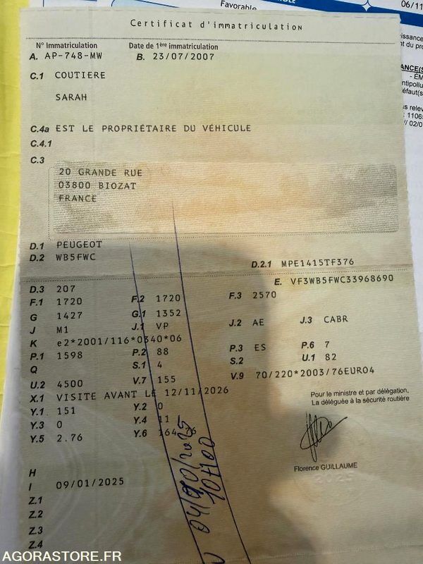 Peugeot 207 Color: grey Power: 7 Engine volume: 1598 Fuel: petrol Gearbox type: manual FR: Type de véhicule CABRIOLET Date et lieu de visite: mably Nb portes: 2 Etat carrosserie: bon Etat des pneus: bon Transmission: AVANT Version: 1.6 THP moteur + thermostat + pompe a eau + révision faite 20/10/2025 a 144740km Ref No:MK48915 VIN: VF3WB5FWC33968690
