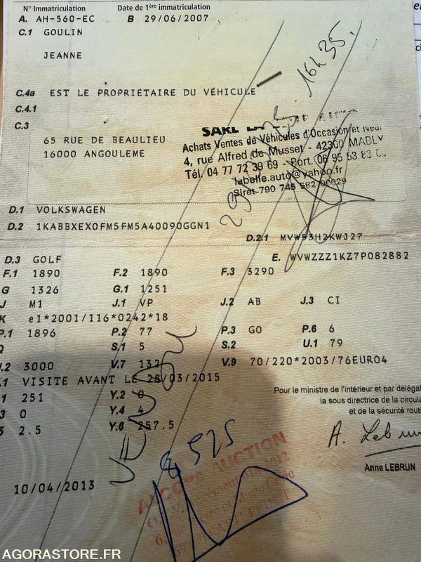 Volkswagen GOLF Power: 6 Engine volume: 1896 Fuel: gas Gearbox type: manual FR: Type de véhicule BERLINE Date et lieu de visite: MABLY Nb portes: 5 Transmission: AVANT Version: V TDI Ref No:WK48915 VIN: WVWZZZ1KZ7P082882