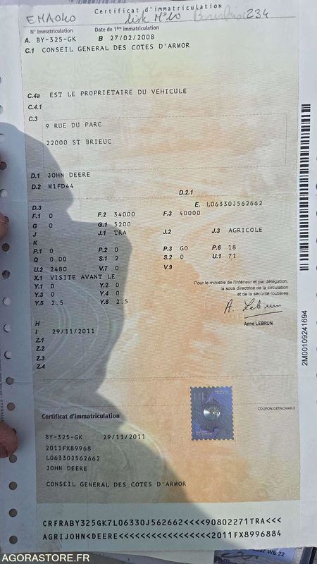 John Deere 6330 Fuel: diesel FR: Etat des pneus: Avant coupure arrière 70%