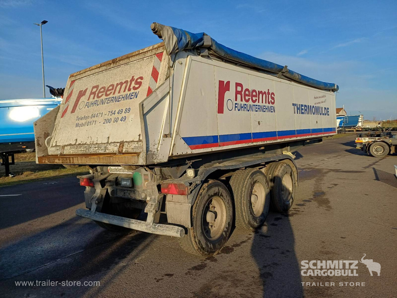 Remarks: **Safety**\\Hinged rear underrun, Antilock Braking System ABS\\\\**Exterior**\\Air suspension, Lift axle front, Recessed pendulum tailgate, Roof rolling tarpaulin, Access platform, Insulated Hollow, 2x7 pin plug, Light alloy rims\\\\**Brake system**\\Drum brake\\\\**Loading area**\\Length 7.170 mm, Width 2.300 mm, Height 1.200 mm, Volume 19 m³\\\\**Tyre sizes**\\1. Achse: 385/65 R22.5 , Tread depth: 8 mm / 11 mm, 2. Achse: 385/65 R22.5 , Tread depth: 11 mm / 5 mm, 3. Achse: 385/65 R22.5 , Tread depth: 5 mm / 4 mm\\\\**Other dimensions and weights**\\GVW: 35.000 kg\\\\----