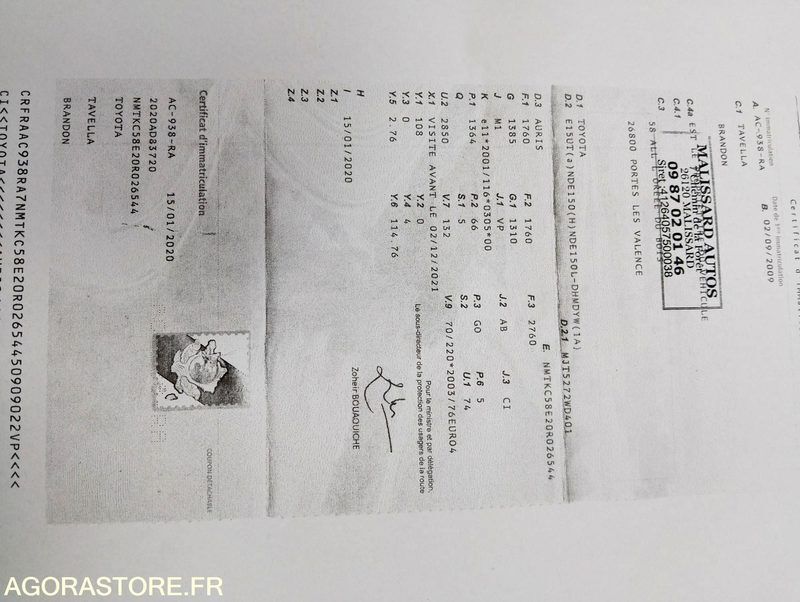 Toyota AURIS Power: 90 Engine volume: 1364 Fuel: gas Axle 1 common tyre size: 195/65/15 Conditioner: 1 Gearbox type: manual FR: Type de véhicule BERLINE Date et lieu de visite: MALISSARD IMPORTANT: VENTE EN L'ETAT Nb portes: 5 Etat des pneus: BON Transmission: AVANT Version: 1.4 D4D Etat soubassements: BON TOYOTA AURIS 1.4 D4D Kilométrage : 241835 km Énergie : GO Boite de vitesse : Manuelle Nombre de portes : 5 Puissance fiscale : 4 CV Puissances :(DIN) 90 CV Vitre elec DA Télécommande Centralisation Ref No:QV49286 VIN: NMTKC58E20R026544