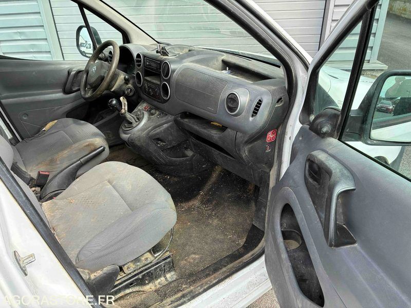 FR: Type de véhicule FOURGONNETTE Dimensions (Longueur, Largeur, Hauteur): largeur : 181 longueur : 438 IMPORTANT: VENDU EN L'ETAT Nb portes: 3 Transmission: AVANT Version: 1.6 HDI Moteur tournant Véhicule roulant Carrosserie mauvais état Intérieur mauvais état Sièges abimé Manque interrupteur leve vitre AVG 1 seul Clé (néman mais ne fonctionne pas avec les barillets de porte)