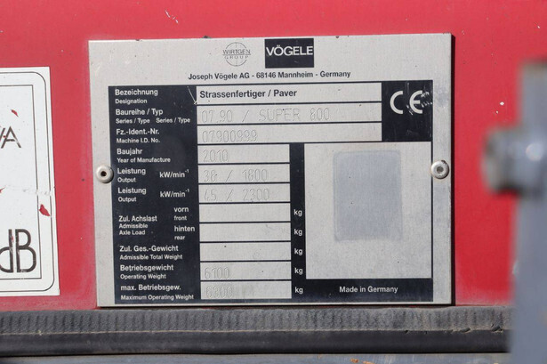 Machine weight: 6300 kg