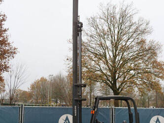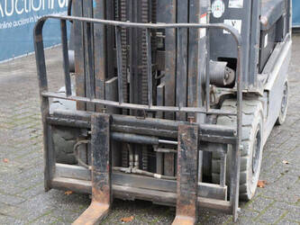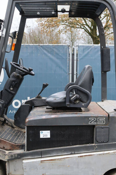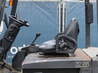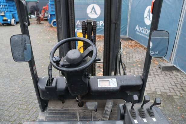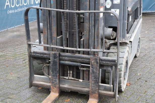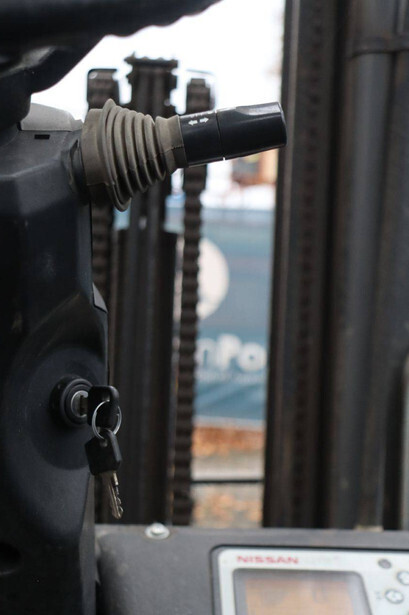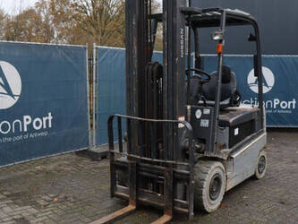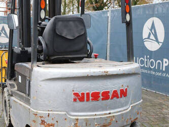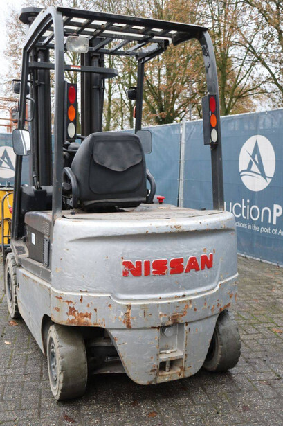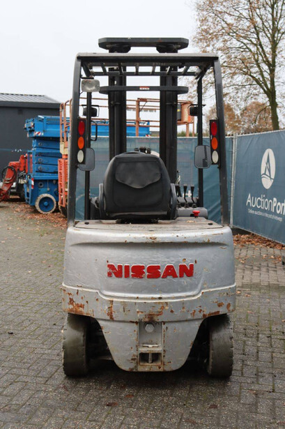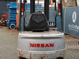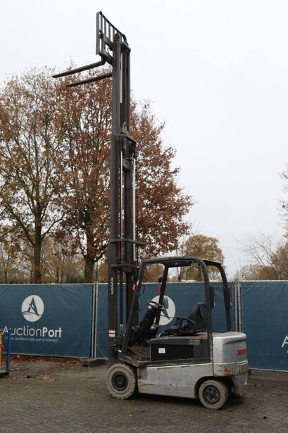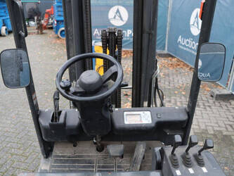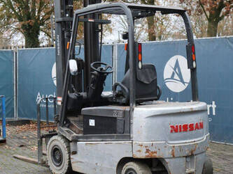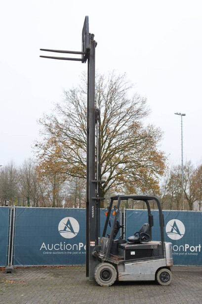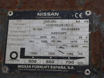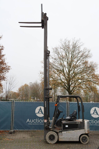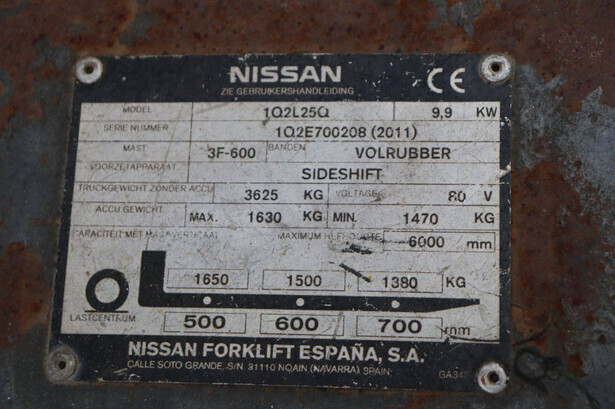 Brand: Nissan Type: 1Q2L25Q Serial number: 102E700208 Year of construction: 2011 Fuel: Electric Mast type: Triplex Sideshift: Yes Lifting capacity: 1650 kg Lifting height: 6000 mm Operating hours read: 2007 h Machine weight: 5100 kg Tires: Non-marking tires Color: black