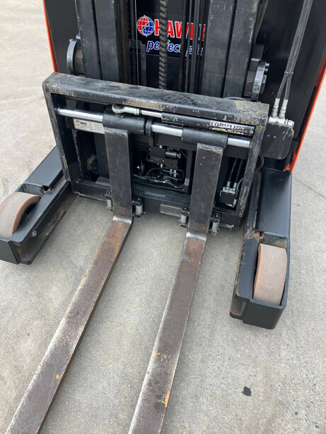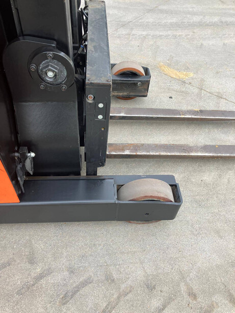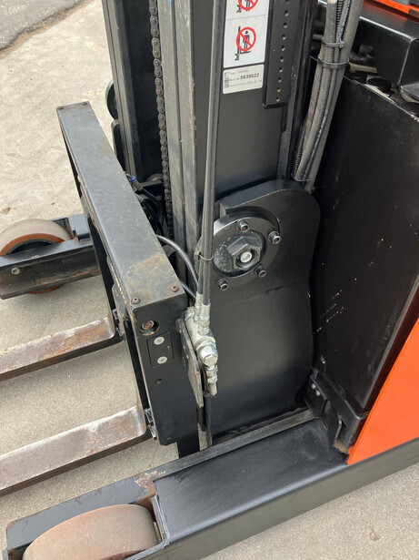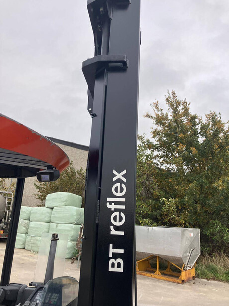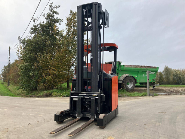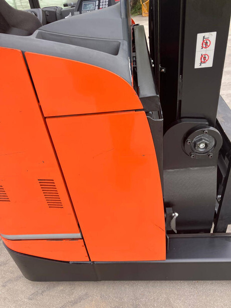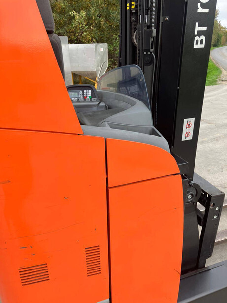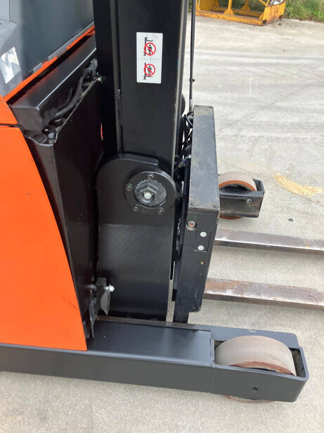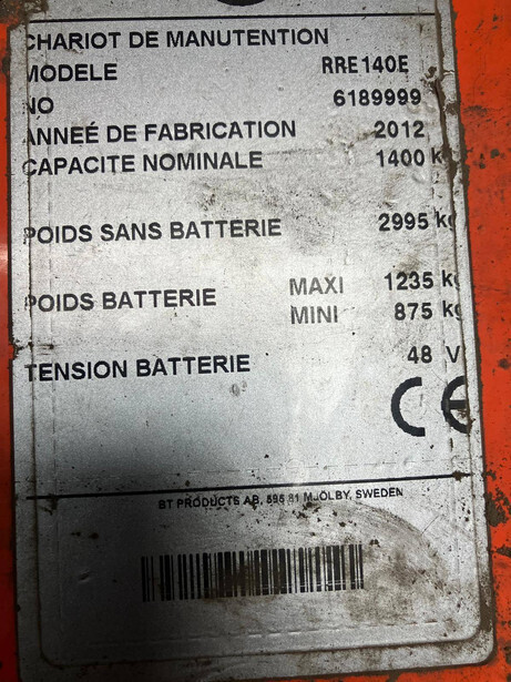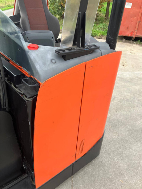 Brand: BT Type: RRE 140E Serial number: 689999 Year of construction: 2012 Fuel: Electric Mast type: Triplex Sideshift: Yes Lifting capacity: 1400 kg Lifting height: 7500 mm Operating hours read: 3001 h Machine weight: 4250 kg Color: orange