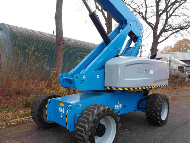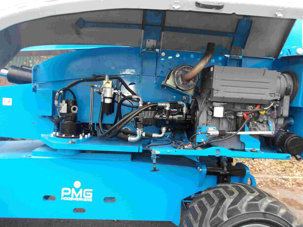 Brand: Genie Model: S-85 Type: Telescopic boom lift Serial number: S8513-10055 Year of construction: 2013 Operating hours read: 3601h Fuel: Diesel Working height: 27.91m Lateral reach: 23.60m Lifting capacity: 227kg Machine weight: 17662kg Wheels: solid tires Drive: Deutz diesel