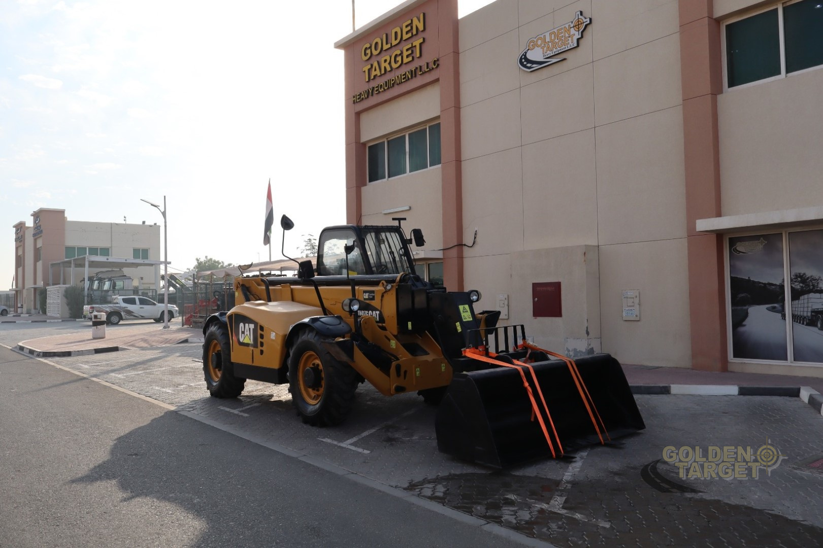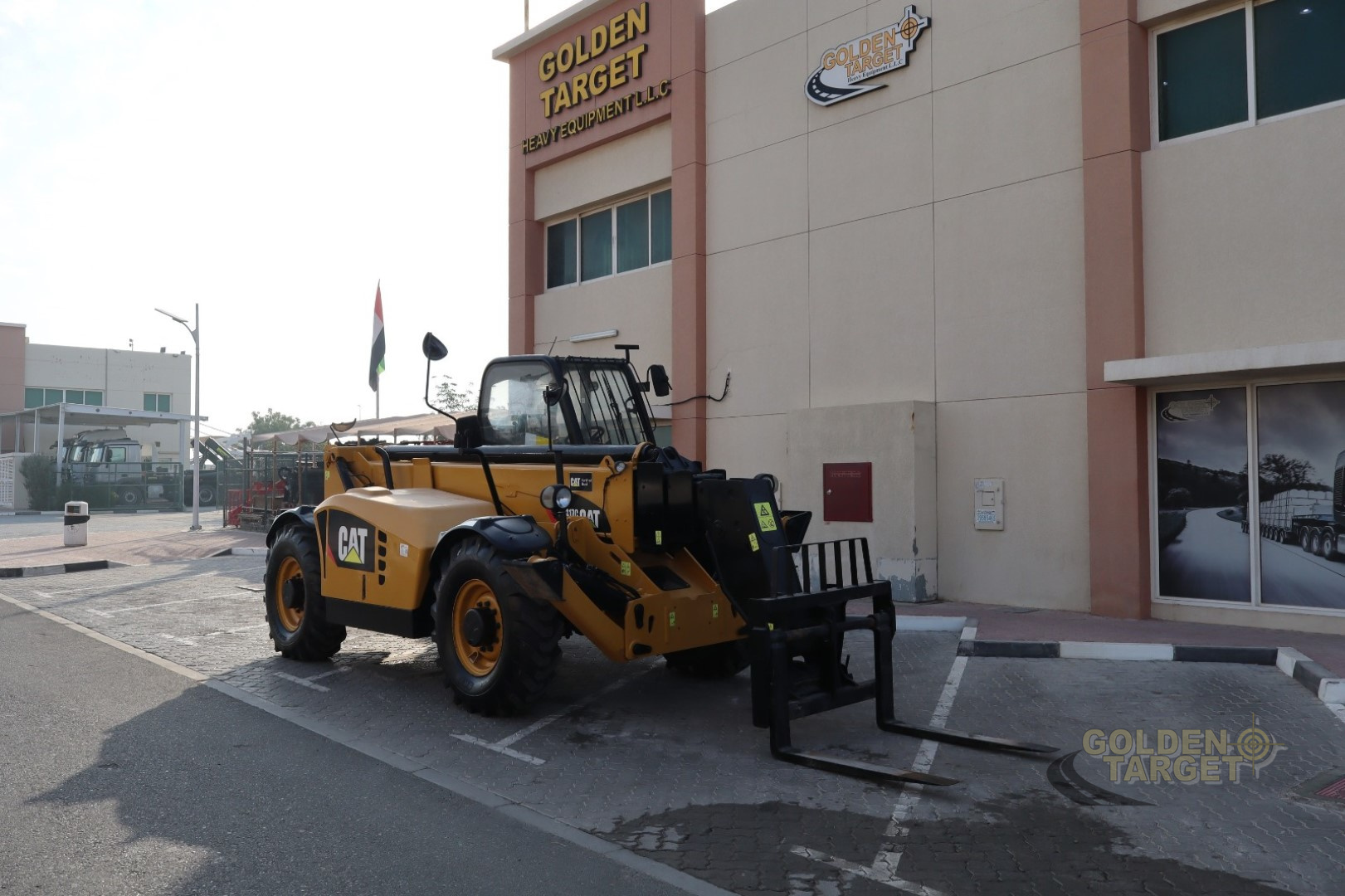 CATERPILLAR TH417 Telehandler; 4 Cylinder CAT Diesel Engine; 100 HP; 17 m Boom Length, 4 Ton Capacity, Enclosed Cabin, Fork, Manual Coupler, Outriggers, Frame Leveling, Auxiliary Hydraulic Plumbing, A/C. Brand New Tyres