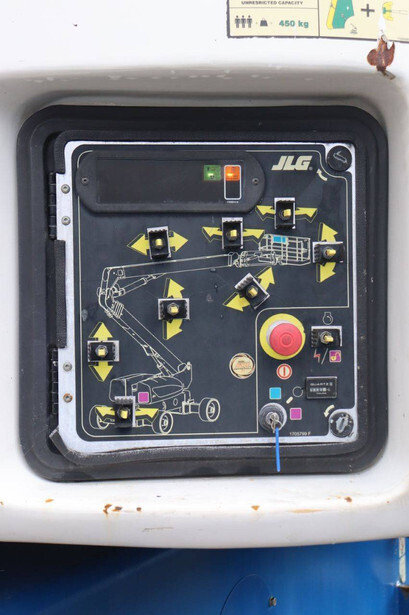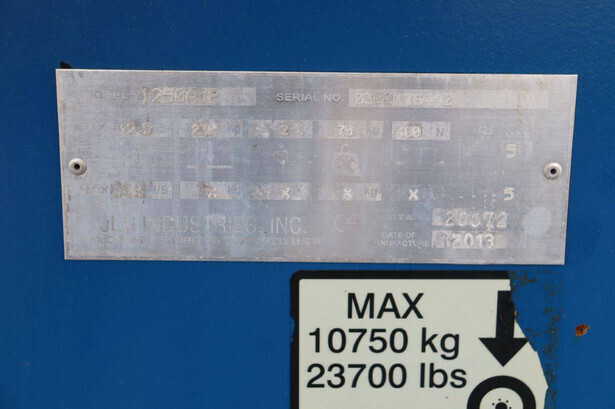 Brand: JLG Type: 1250AJP Serial number: 0300176442 Year of construction: 2013 Fuel: Diesel Lifting capacity: 230 kg Working height: 40.0 m Operating hours read: 5069 h Machine weight: 200 kg Chassis: Wheels Type: Articulated boom lift Tires: Pneumatic tires Color: white