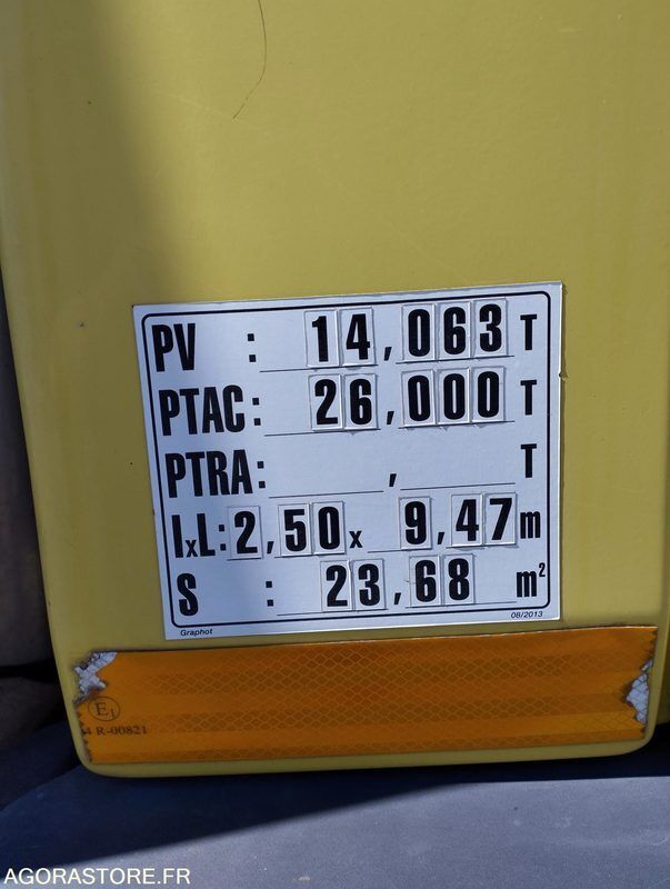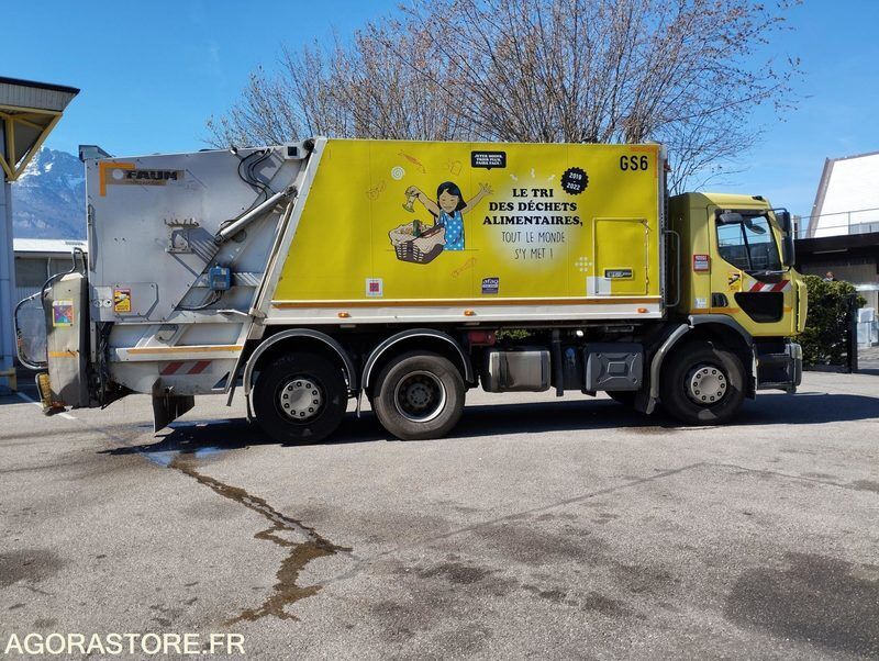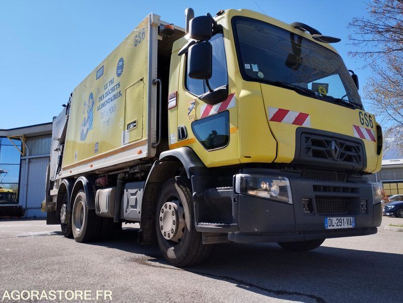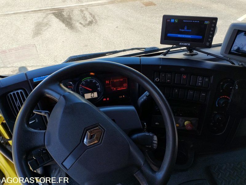 Renault D WIDE Color: yellow Power: 3205 Engine volume: 7698 Fuel: diesel Euro: 6 Axle number: 3 Axle 1 common tyre size: 315/80R22.5 Conditioner: 1 Gearbox type: automatic Overall height: 3.5 Overall length: 9.88 Overall width: 2.5 FR: Type de véhicule Châssis équipé d'une benne à ordures ménagères 26 T