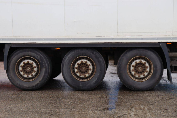 Tyres: Left rear: 7.80 mm Left center: 11.12 mm Front left: 9.82 mm Right rear: 11.12 mm Right center: 8.81 mm Front right: 6.45 mm Machine description: Used semi-trailer.