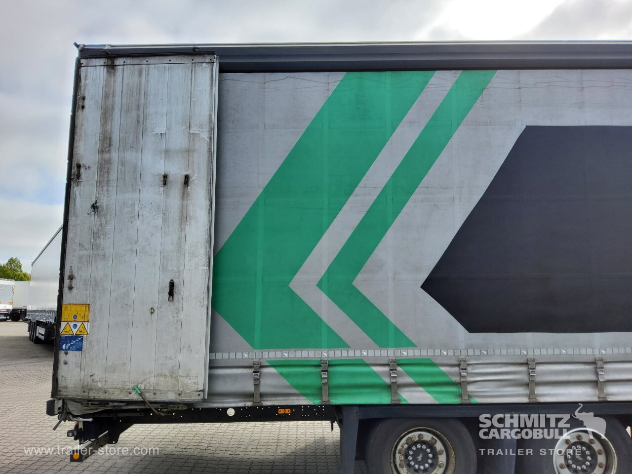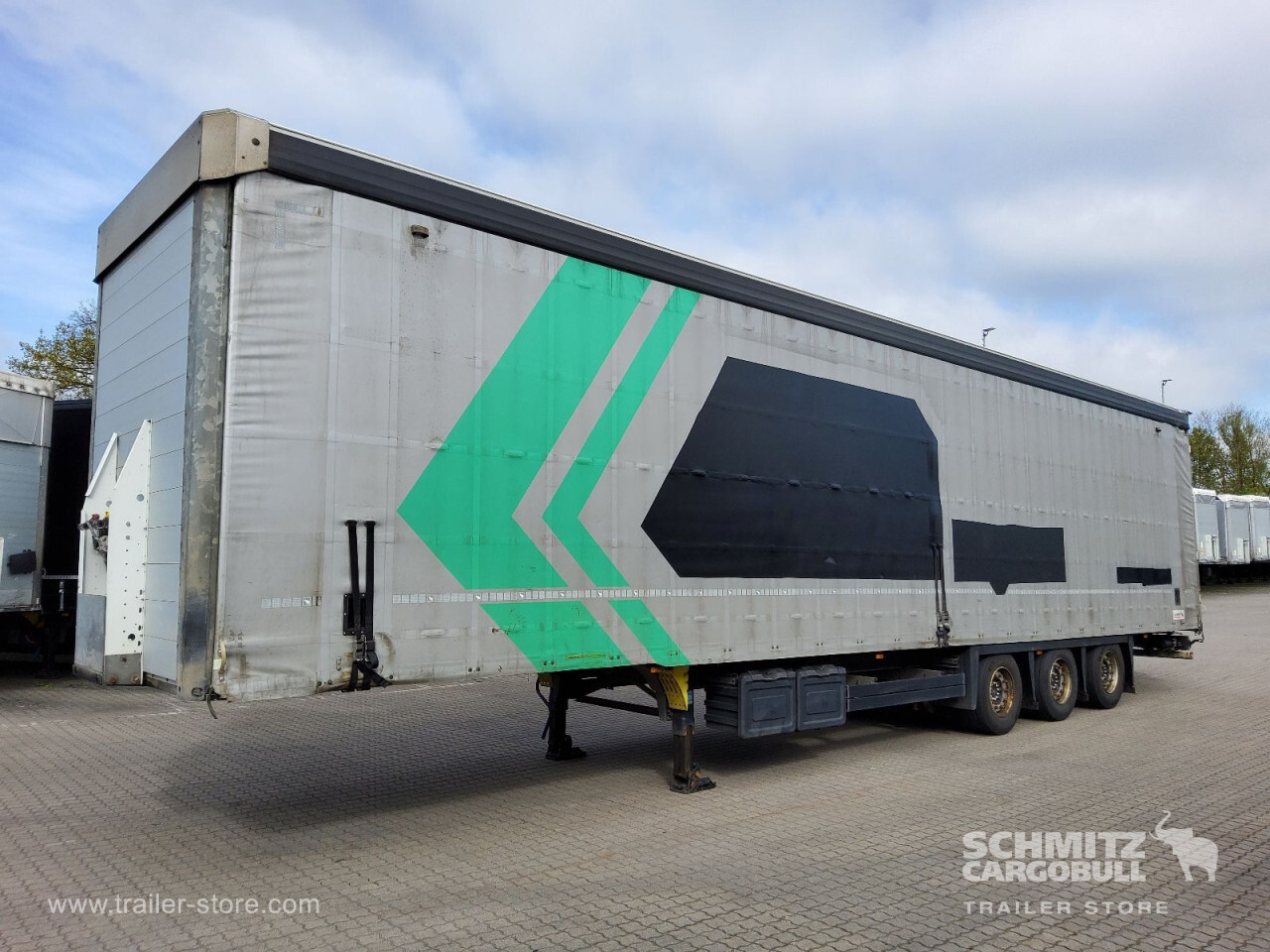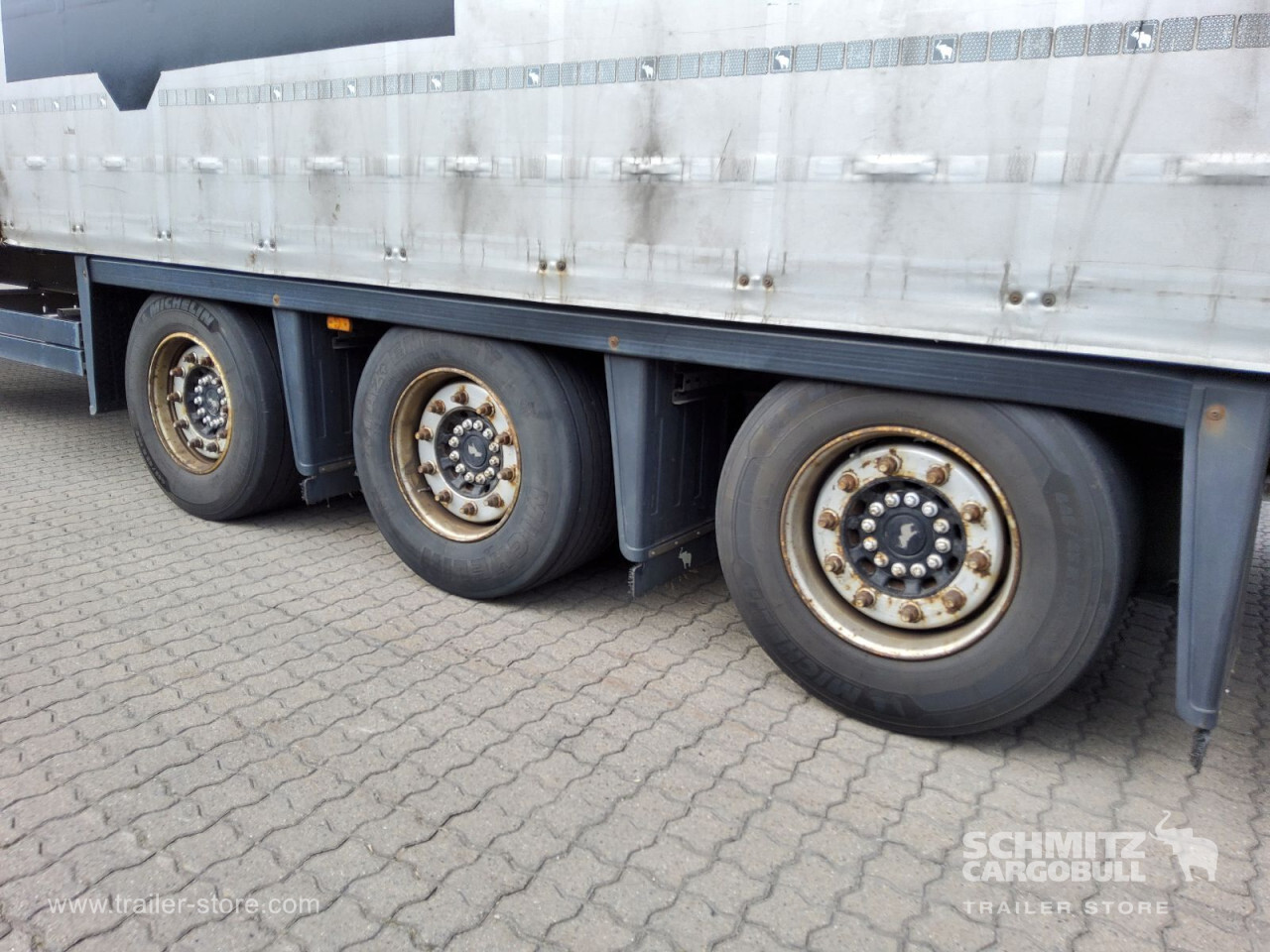 Remarks: **Safety**\\Rear underrun, Antilock Braking System ABS\\\\**Exterior**\\Air suspension, Lift axle front, Toolbox, Bolted chassis, Gantry doors, 1x15 and 2x7 pin plug, Antispray, Lifting roof (hydraulic), Speed Curtain one side\\\\**Cargo securing**\\Cargo securing with certificate, DIN EN 12642 (code XL) certificate, DC 9.5 certificate, Beverage certificate, Punched load securing side rave, Pallet retaining rail, Aluminium slats\\\\**Brake system**\\Disc brake, Schmitz ROTOS\\\\**Floor**\\Wooden floor, Lashing rings in floor\\\\**Loading area**\\Length 13.620 mm, Width 2.480 mm, Height 2.950 mm, Volume 99 m³\\\\**Tyre sizes**\\1. Achse: 445/45 R19.5 , Tread depth: 6 mm / 7 mm, 2. Achse: 445/45 R19.5 , Tread depth: 10 mm / 8 mm, 3. Achse: 445/45 R19.5 , Tread depth: 8 mm / 7 mm\\\\**Other dimensions and weights**\\GVW: 36.000 kg\\\\----