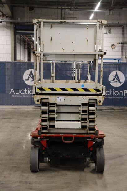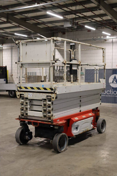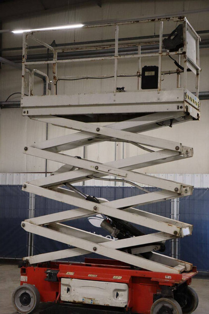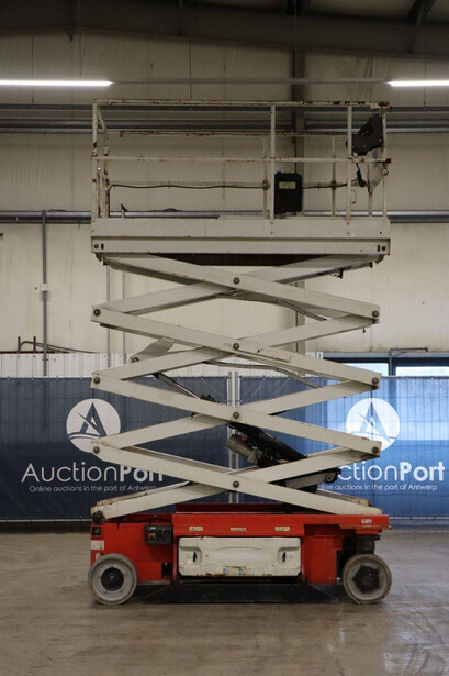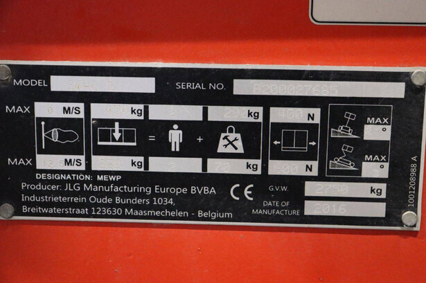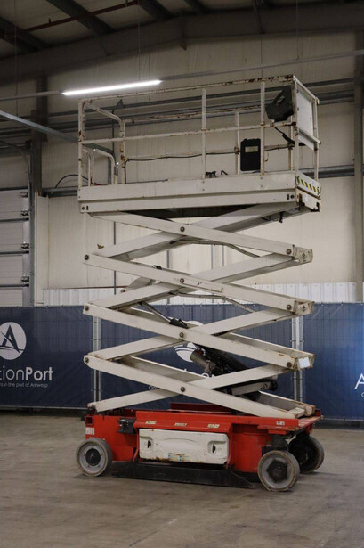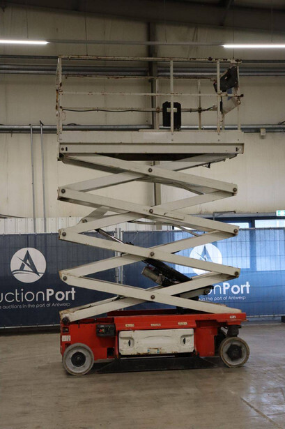 Brand: JLG Type: 2646 ES Serial number: B200027685 Year of construction: 2016 Fuel: Electric Lifting capacity: 450 kg Working height: 9.92 m Operating hours read: 304 h Machine weight: 2730 kg Chassis: Wheels Type: Scissor lift Tires: Solid tires Color: red