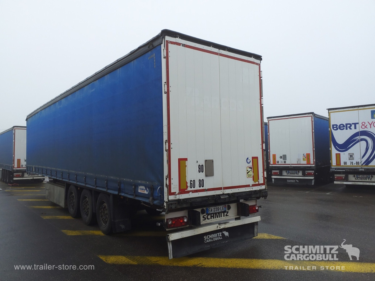 Remarks: **Safety**\\Rear underrun, Antilock Braking System ABS, Fire extinguisher holder\\\\**Exterior**\\Air suspension, Lift axle front and rear, Pallet box, Bolted chassis, Sliding roof, 1x15 and 2x7 pin plug, Antispray\\\\**Cargo securing**\\Cargo securing with certificate, DIN EN 12642 (code XL) certificate, Punched load securing side rave, Wooden - support slats\\\\**Brake system**\\Disc brake, Schmitz ROTOS\\\\**Floor**\\Wooden floor, Lashing rings in floor\\\\**Loading area**\\Length 13.620 mm, Width 2.480 mm, Height 2.830 mm, Volume 95 m³\\\\**Tyre sizes**\\1. Achse: 385/65 R22.5 , Tread depth: 11 mm / 11 mm, 2. Achse: 385/65 R22.5 , Tread depth: 6 mm / 7 mm, 3. Achse: 385/65 R22.5 , Tread depth: 7 mm / 7 mm\\\\**Other dimensions and weights**\\GVW: 38.000 kg\\\\----Disques de frein Essieu 1 36,00 mm Plaquettes de frein Essieu 1 50% usure Disques de frein Essieu 2 40,5mm Plaquettes de frein Essieu 2 70% usure Disques de frein Essieu 3 38,1mm Plaquettes de frein Essieu 3 70% usureMines 07/2026 -