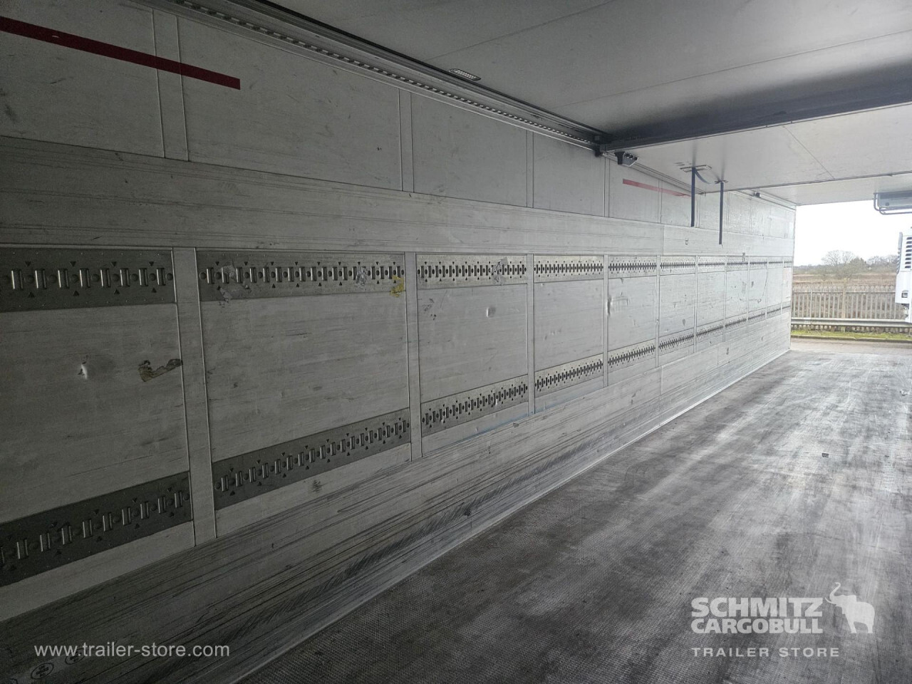 Remarks: **Safety**\\Rear underrun, Antilock Braking System ABS, Hubodometer\\\\**Exterior**\\Air suspension, Ferry lashings, 1x15 and 2x7 pin plug, Antispray\\\\**Further equipment**\\Sliding suzi rail.2 rows of recessed loadlock.\\\\**Cargo securing**\\Load securing rail\\\\**Brake system**\\Disc brake, Schmitz ROTOS\\\\**Floor**\\Aluminum floor\\\\**Cooling unit**\\Thermoking SLX E 300, Diesel/Elektro, 10.579 Operating hours Diesel, 965 Operating hours electric\\\\**Loading area**\\Length 13.410 mm, Width 2.490 mm, Height 2.600 mm, Volume 86 m³\\\\**Tyre sizes**\\ 385/65 R22.5 , 385/65 R22.5 , 385/65 R22.5\\\\**Other dimensions and weights**\\Payload: 30.404 kg, GVW: 39.000 kg, Wheel base: 7.600 mm\\\\----