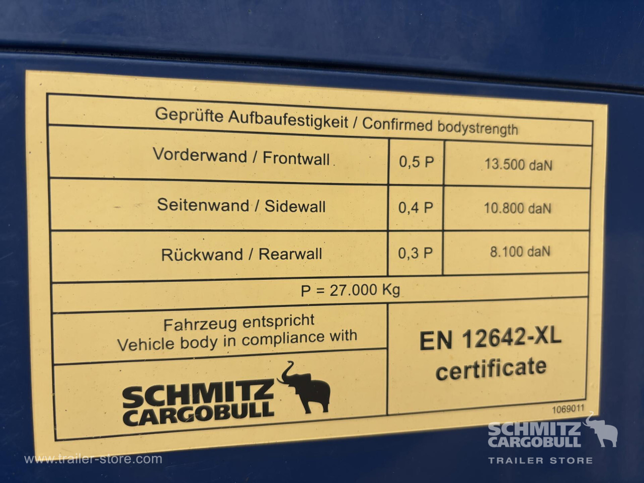 Remarks: **Safety**\\Rear underrun, Antilock Braking System ABS\\\\**Interior**\\Additional stake pockets\\\\**Exterior**\\Air suspension, Ferry lashings, Bolted chassis, Sliding roof, 1x15 and 2x7 pin plug, Antispray, Lifting roof (manual)\\\\**Cargo securing**\\DIN EN 12642 (code XL) certificate, Wooden - support slats\\\\**Brake system**\\Disc brake, Schmitz ROTOS\\\\**Loading area**\\Length 13.620 mm, Width 2.480 mm, Height 2.900 mm, Volume 97 m³\\\\**Tyre sizes**\\1. Achse: 435/50 R19.5 , Tread depth: 3 mm / 6 mm, 2. Achse: 435/50 R19.5 , Tread depth: 4 mm / 9 mm, 3. Achse: 435/50 R19.5 , Tread depth: 10 mm / 5 mm\\\\**Other dimensions and weights**\\Payload: 32.015 kg, GVW: 39.000 kg, Wheel base: 7.700 mm\\\\----