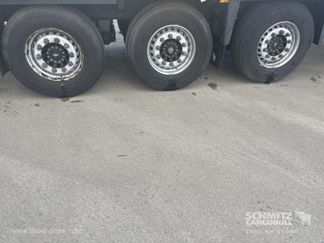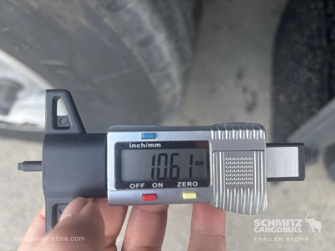 Remarks: **Safety**\\Rear underrun, Antilock Braking System ABS\\\\**Interior**\\Additional stake pockets\\\\**Exterior**\\Air suspension, Toolbox, Spare wheel carrier, Ferry lashings, Bolted chassis, Sliding roof, 1x15 and 2x7 pin plug, Antispray, Lifting roof (manual)\\\\**Cargo securing**\\DIN EN 12642 (code XL) certificate, Aluminium slats\\\\**Brake system**\\Disc brake, Schmitz ROTOS\\\\**Loading area**\\Length 13.620 mm, Width 2.480 mm, Height 2.700 mm, Volume 91 m³\\\\**Tyre sizes**\\1. Achse: 385/65 R22.5 , Tread depth: 8 mm / 10 mm, 2. Achse: 385/65 R22.5 , Tread depth: 13 mm / 13 mm, 3. Achse: 385/65 R22.5 , Tread depth: 10 mm / 10 mm\\\\**Other dimensions and weights**\\Payload: 31.800 kg, GVW: 39.000 kg, Wheel base: 7.700 mm\\\\----