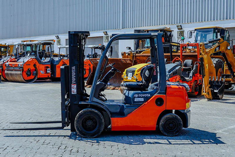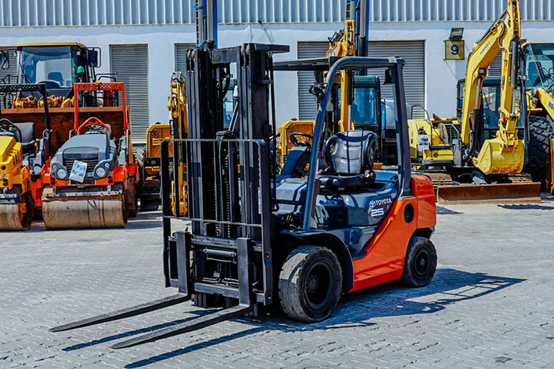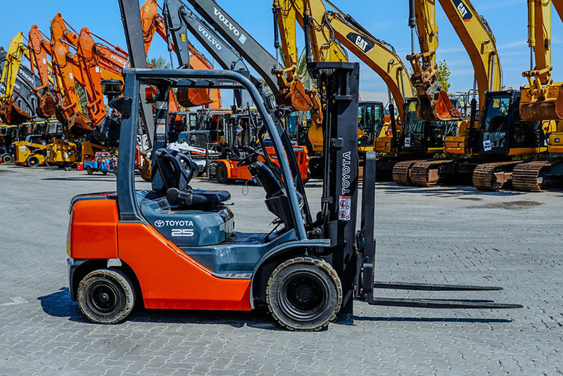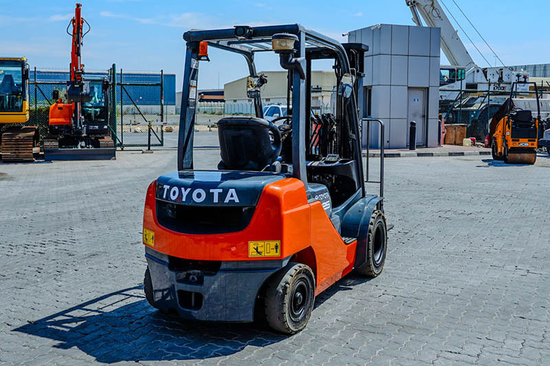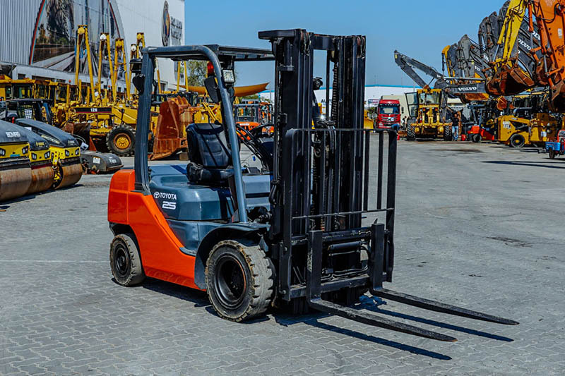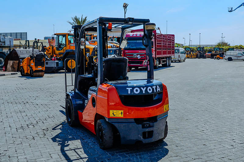 2.5 Ton, 3 Stage Mast, 189 in Max Lift Height, 83 in Lowered Mast Height, 48 in Forks, Auxiliary Hydraulic Plumbing, Hydraulic Side Shift, Solid Pneumatic Tires, 2017 US EPA Label, Toyota 3 Cylinder 1.79 L Diesel Engine