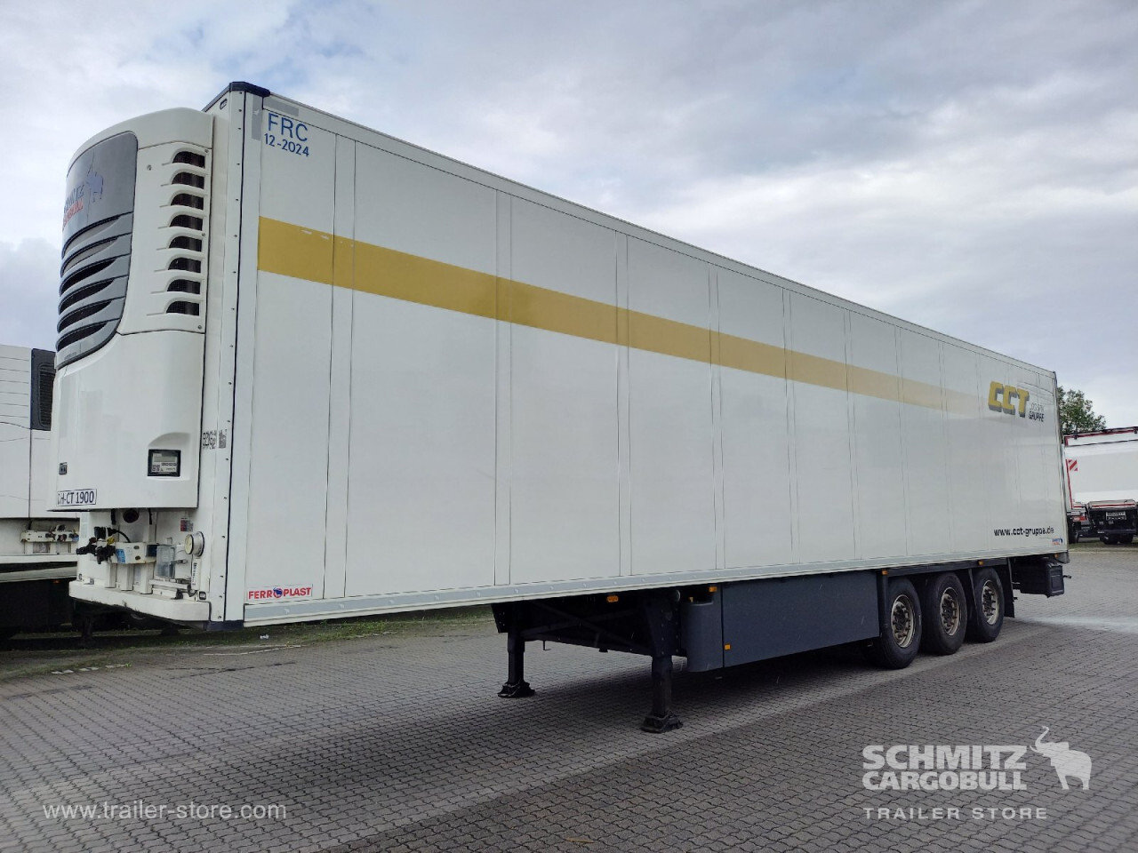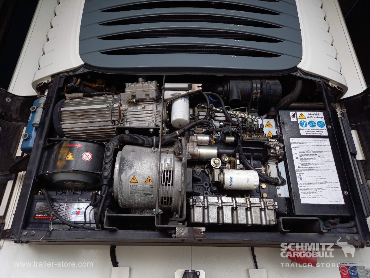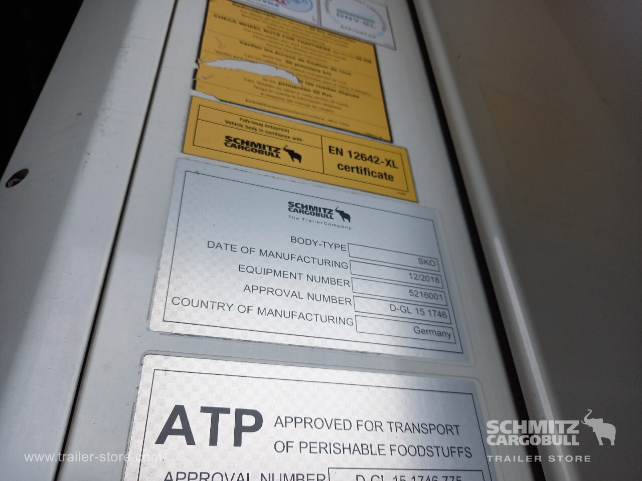 Remarks: **Safety**\\Rear underrun, Antilock Braking System ABS, Telematics system\\\\**Interior**\\Temperature recorder, Double deck with beams\\\\**Exterior**\\Air suspension, Lift axle front and rear, Pallet box, Toolbox, Spare wheel carrier double, Bolted chassis, Gantry doors, 1x15 and 2x7 pin plug, Antispray, International customs seals\\\\**Cargo securing**\\Cargo securing with certificate, DIN EN 12642 (code XL) certificate, Load securing rail\\\\**Brake system**\\Disc brake, Schmitz ROTOS\\\\**Floor**\\Aluminum floor\\\\**Cooling unit**\\Schmitz Cargobull S.CU V 1.0, Diesel/Elektro, 7.352 Operating hours Diesel, 1.403 Operating hours electric\\\\**Loading area**\\Length 13.410 mm, Width 2.490 mm, Height 2.700 mm, Volume 90 m³\\\\**Tyre sizes**\\1. Achse: 385/65 R22.5 , Tread depth: 8 mm / 11 mm, 2. Achse: 385/65 R22.5 , Tread depth: 8 mm / 7 mm, 3. Achse: 385/65 R22.5 , Tread depth: 10 mm / 9 mm\\\\**Other dimensions and weights**\\GVW: 36.000 kg\\\\----