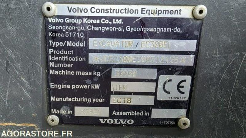 احصل على تقرير فحص مفصل لـ 2018 فولفو EC300EL واشتري المعدات براحة بال تامة.