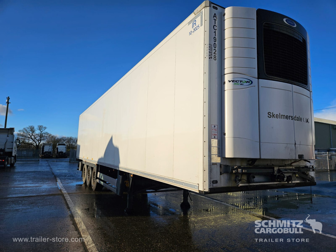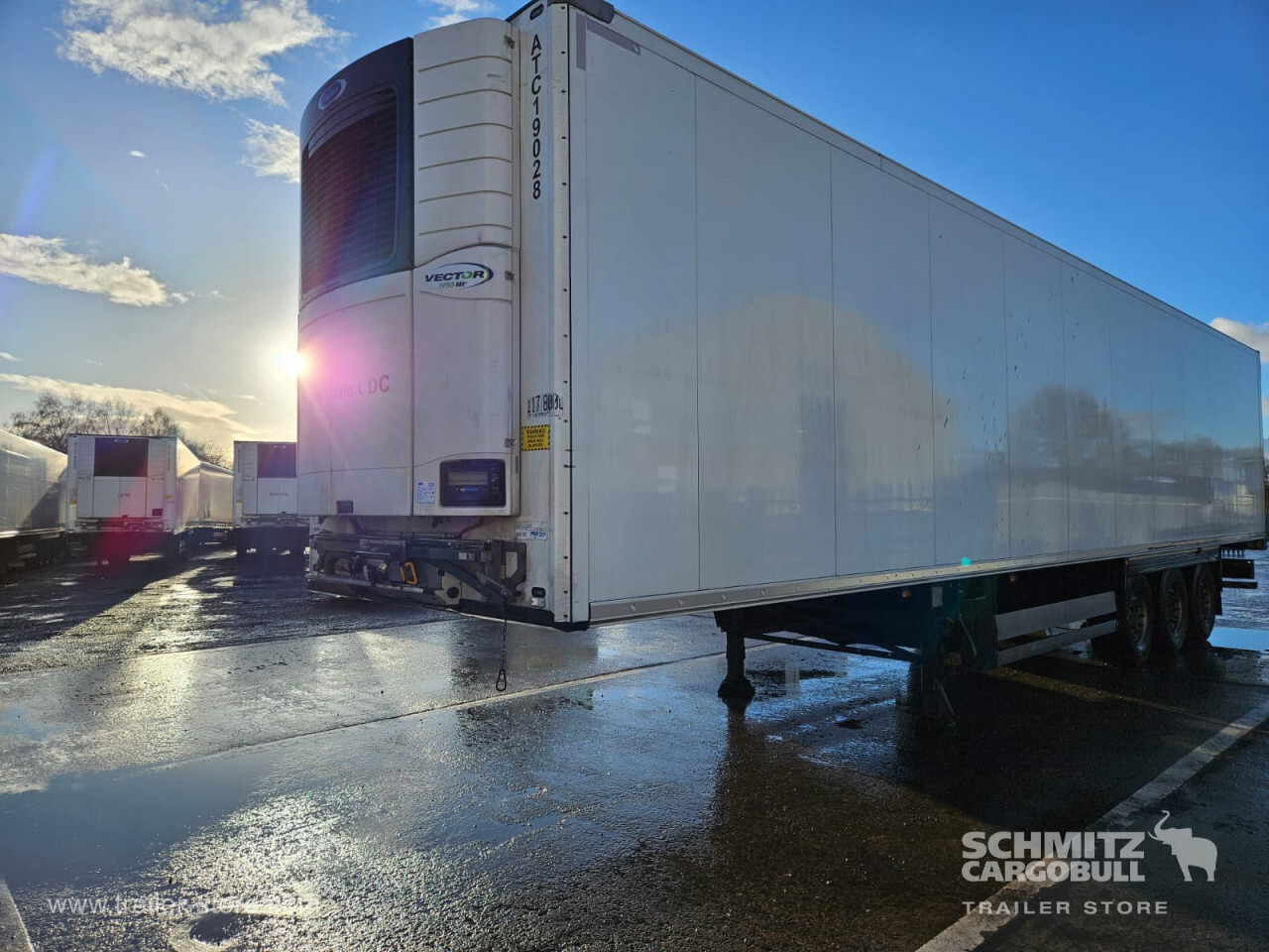Remarks: **Safety**\\Rear underrun, Antilock Braking System ABS\\\\**Exterior**\\Air suspension, Toolbox, Ferry lashings, 1x15 and 2x7 pin plug, Antispray\\\\**Further equipment**\\2 LED reverse (Banksman) lights on rear.5 Bar tread plate floor.Pair of V7 load securing rails.LED side marker lights coupled with indicators.Ultra bright interior lighting without rotary switch.\\\\**Cargo securing**\\Load securing rail\\\\**Brake system**\\Disc brake, Schmitz ROTOS\\\\**Floor**\\Aluminum floor\\\\**Cooling unit**\\Carrier Vector 1950 MT, Diesel/Elektro, 8.077 Operating hours Diesel, 4.194 Operating hours electric\\\\**Loading area**\\Length 13.403 mm, Width 2.490 mm, Height 2.600 mm, Volume 86 m³\\\\**Tyre sizes**\\ 385/65 R22.5 , 385/65 R22.5 , 385/65 R22.5\\\\**Other dimensions and weights**\\Payload: 30.424 kg, GVW: 39.000 kg, Wheel base: 7.600 mm\\\\----