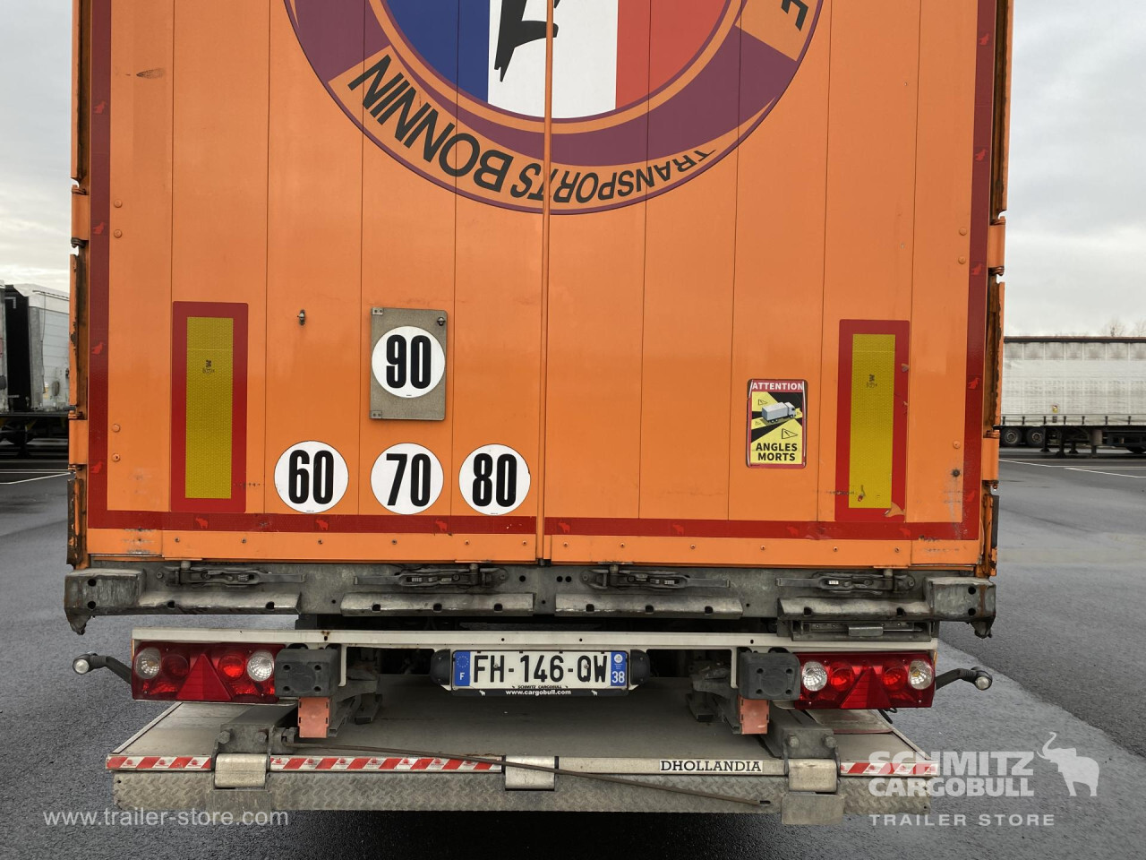Remarks: **Safety**\\Rear underrun, Antilock Braking System ABS, Fire extinguisher holder\\\\**Exterior**\\Air suspension, Taillift: Dhollandia, Toolbox, Spare wheel carrier double, Bolted chassis, Sliding roof, 1x15 and 2x7 pin plug, Antispray\\\\**Cargo securing**\\DIN EN 12642 (code XL) certificate, Punched load securing side rave, Wooden - support slats\\\\**Brake system**\\Disc brake, Schmitz ROTOS\\\\**Floor**\\Wooden floor\\\\**Loading area**\\Length 13.620 mm, Width 2.480 mm, Height 2.700 mm, Volume 91 m³\\\\**Tyre sizes**\\1. Achse: 385/65 R22.5 , Tread depth: 2 mm / 2 mm, 2. Achse: 385/65 R22.5 , Tread depth: 5 mm / 7 mm, 3. Achse: 385/65 R22.5 , Tread depth: 3 mm / 4 mm\\\\**Other dimensions and weights**\\GVW: 38.000 kg\\\\----