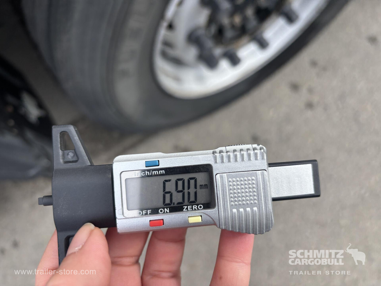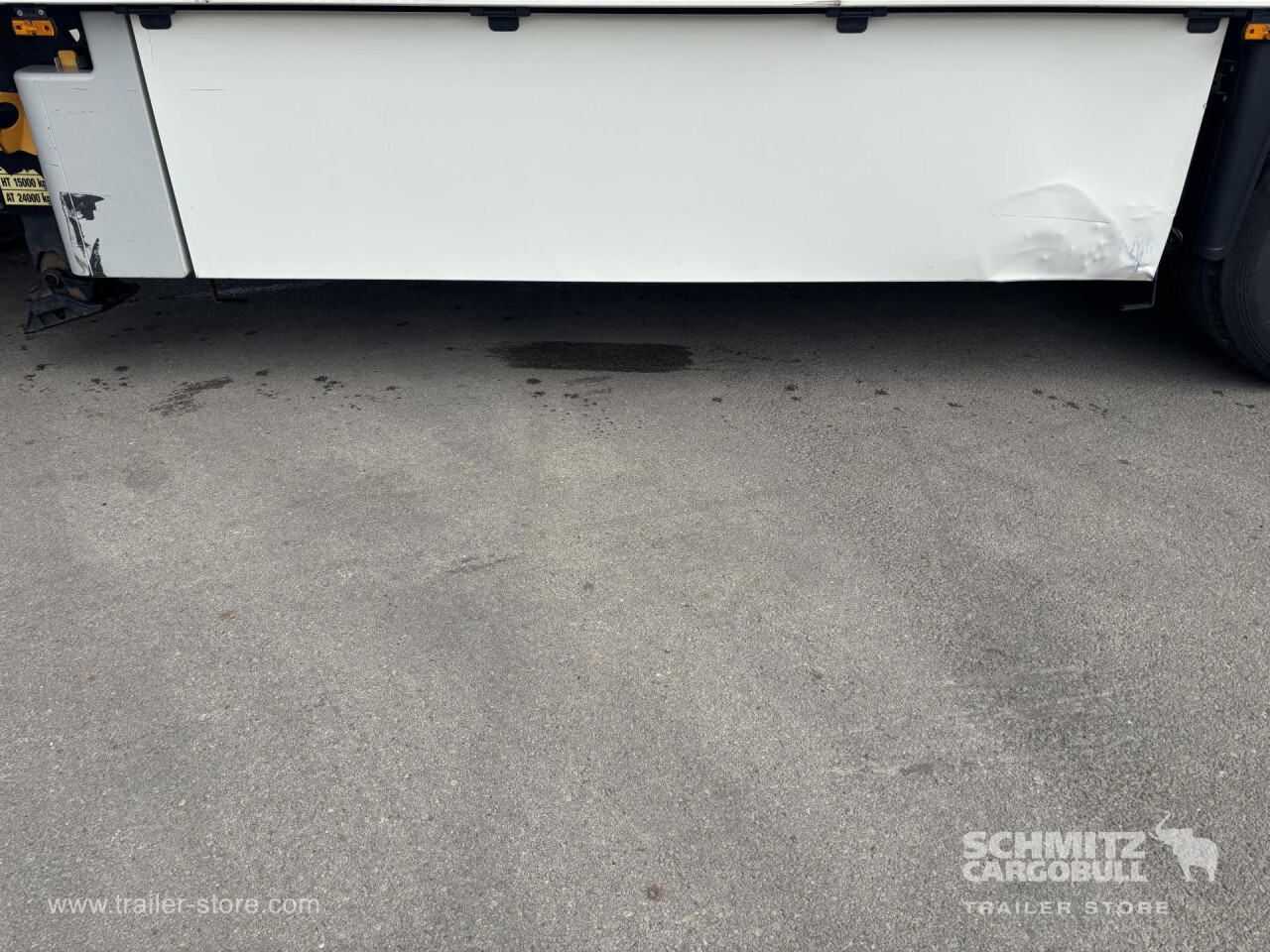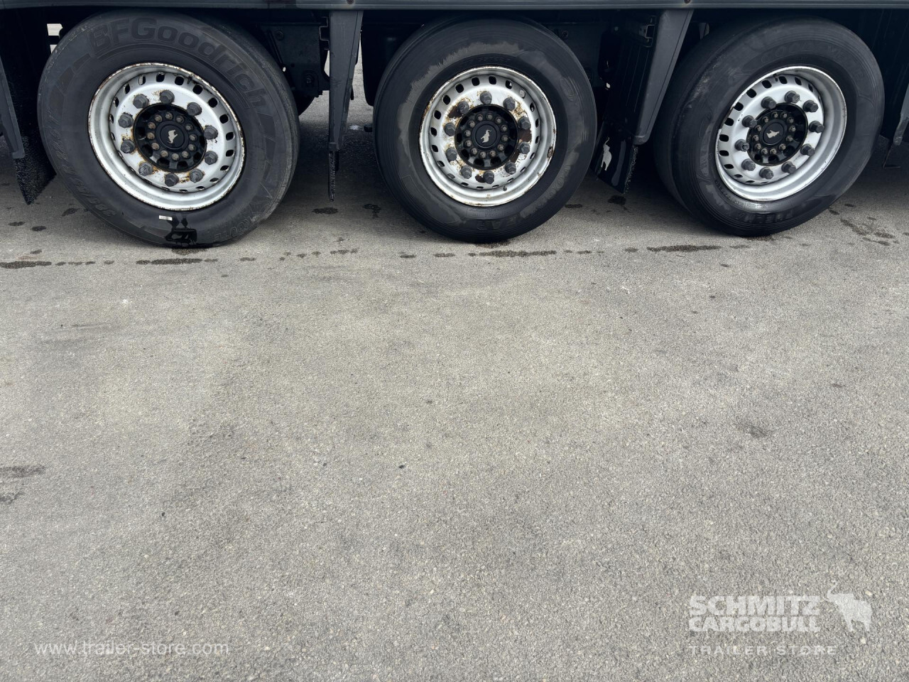 Remarks: **Safety**\\Antilock Braking System ABS\\\\**Exterior**\\Air suspension, Pallet box, Demount BDF, Spare wheel carrier double, Ferry lashings, Bolted chassis, 1x15 and 2x7 pin plug, Antispray\\\\**Brake system**\\Disc brake, Schmitz ROTOS\\\\**Loading area**\\Length 13.403 mm, Width 2.490 mm, Height 2.650 mm, Volume 88 m³\\\\**Tyre sizes**\\1. Achse: 385/55 R22.5 , Tread depth: 3 mm / 4 mm, 2. Achse: 385/55 R22.5 , Tread depth: 7 mm / 6 mm, 3. Achse: 385/55 R22.5 , Tread depth: 13 mm / 7 mm\\\\**Other dimensions and weights**\\Wheel base: 7.600 mm\\\\----