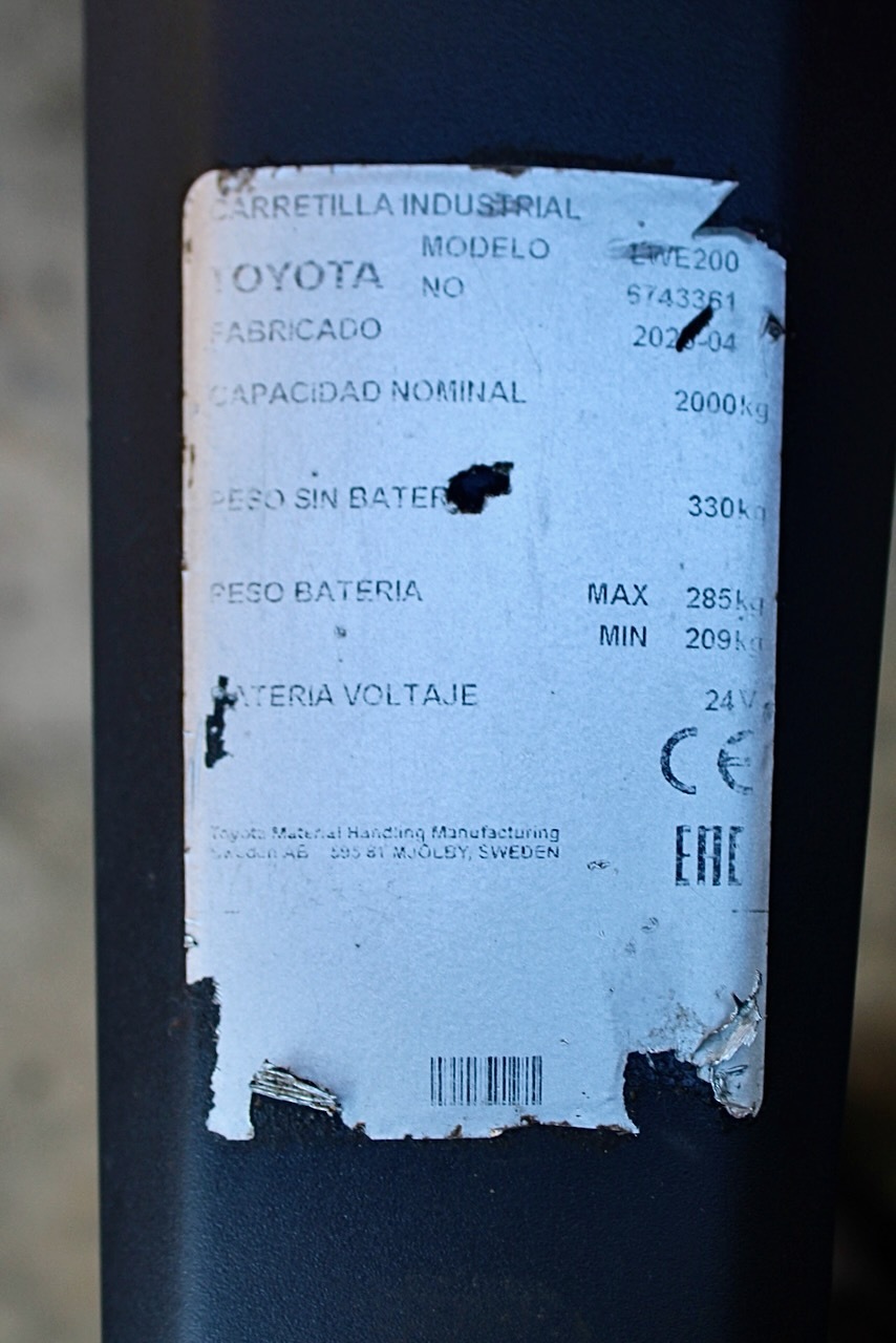 BT LWE 200 Load capacity: 2.000 Kg Lifting height: Mast: Fork: 1.150 mm Build height: Motorization: Electric Battery: 24v/300Ah Charger: 24 v Good condition.