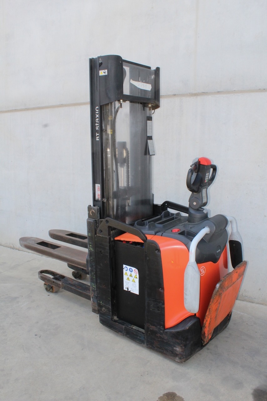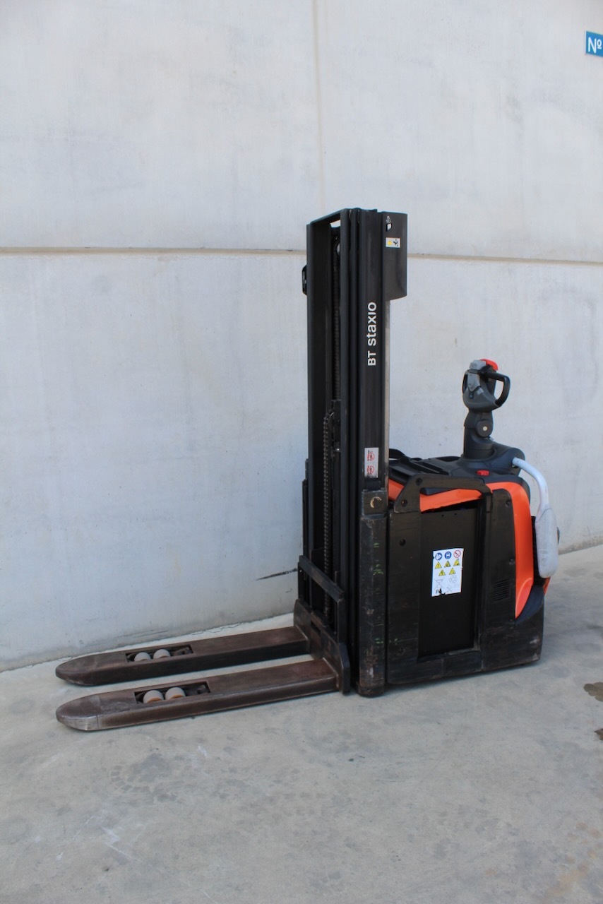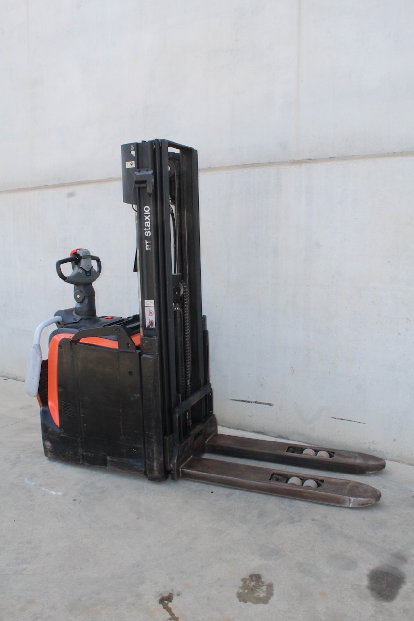 BT SPE 120 L Load capacity: 1.200 Kg Lifting height: 4.150 mm Mast: Triplex Fork: 1.150 x 570 mm Build height: 1.995 mm Motorization: Electric Battery: 24v/500Ah Charger: 24 v Good condition, Electric steering wheel, Initial lift.