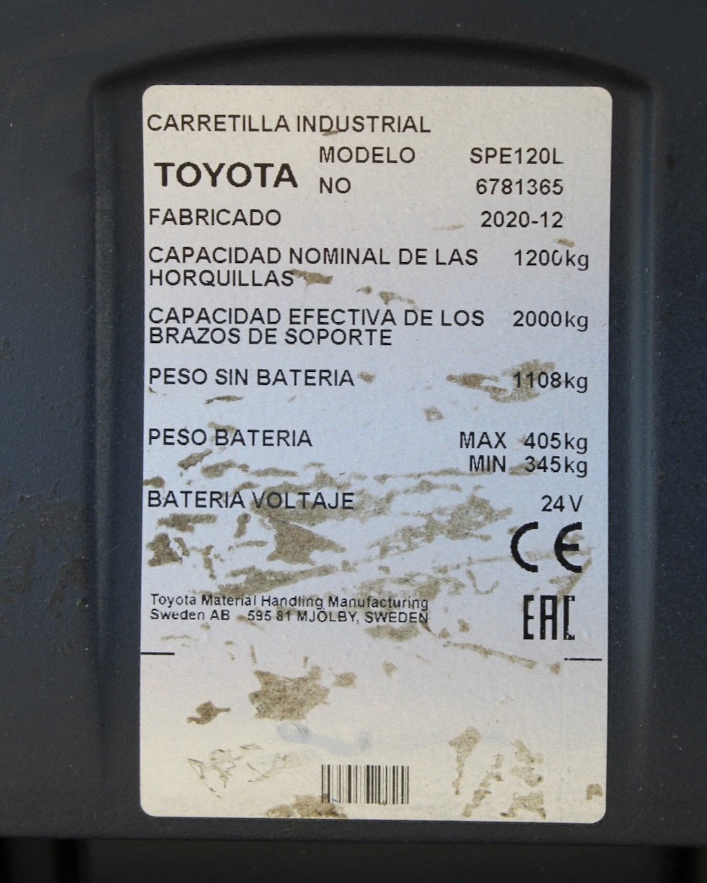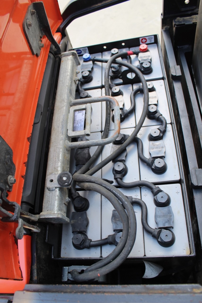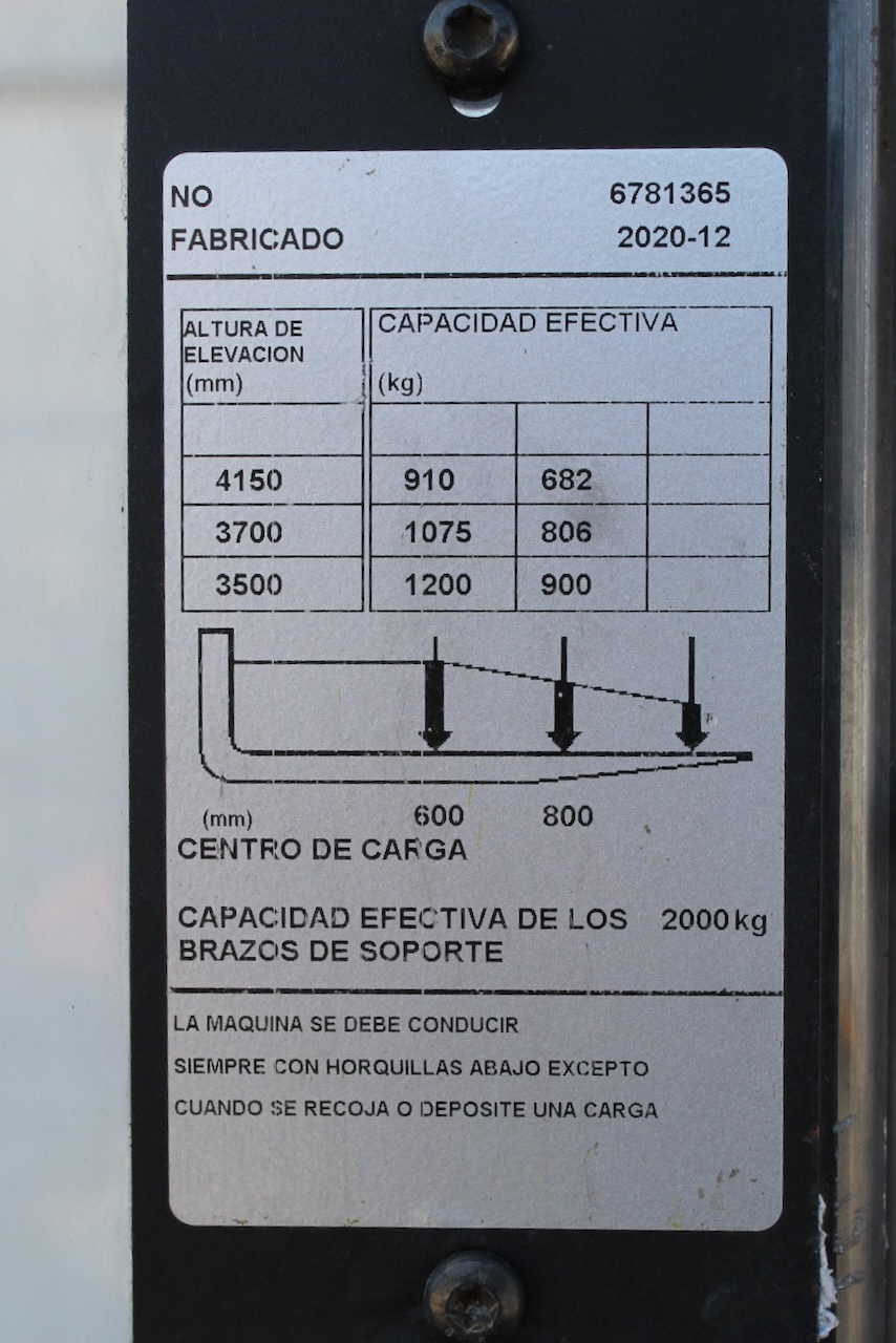 BT SPE 120 L Load capacity: 1.200 Kg Lifting height: 4.150 mm Mast: Triplex Fork: 1.150 x 570 mm Build height: 1.995 mm Motorization: Electric Battery: 24v/500Ah Charger: 24 v Good condition, Electric steering wheel, Initial lift.