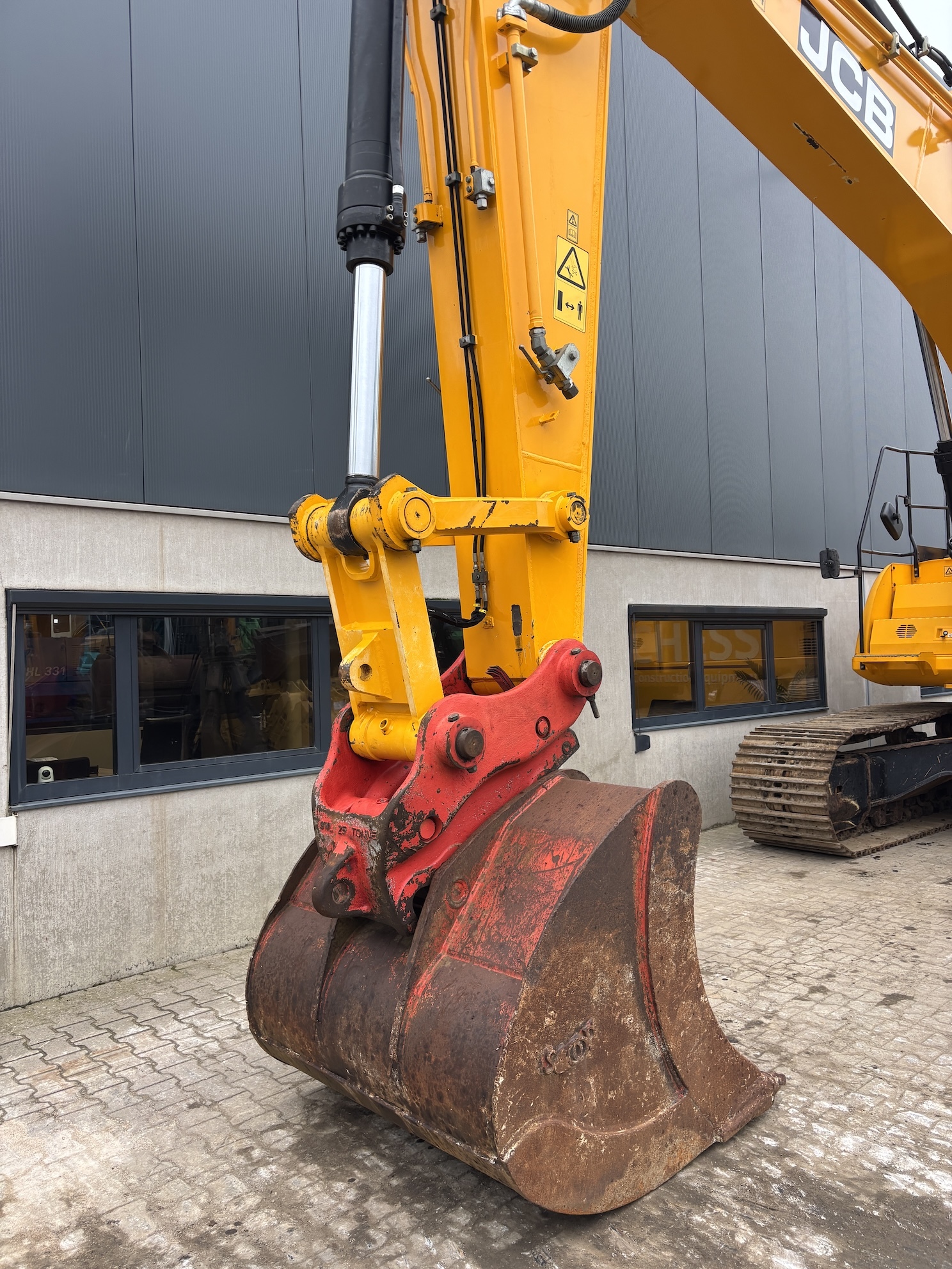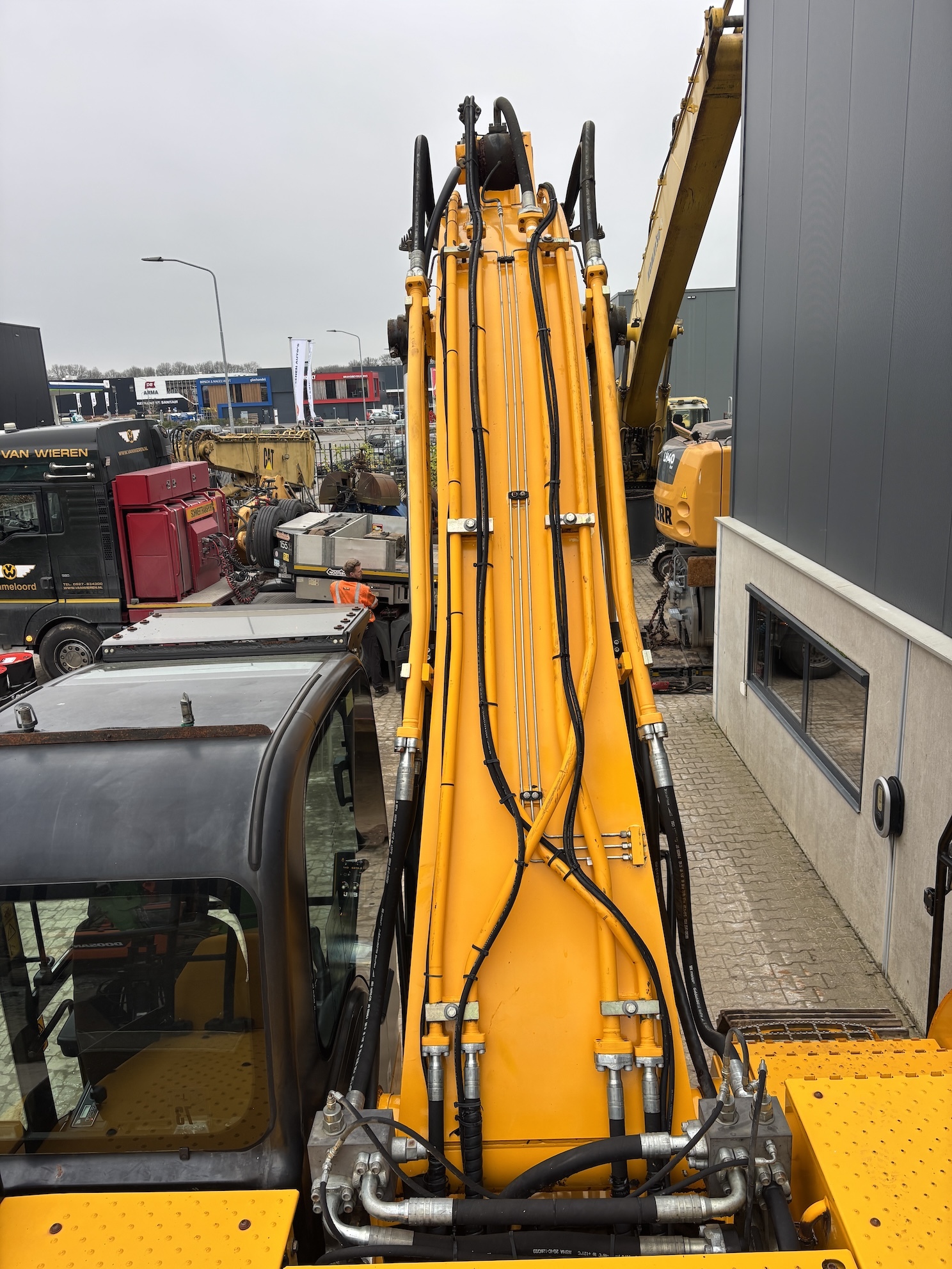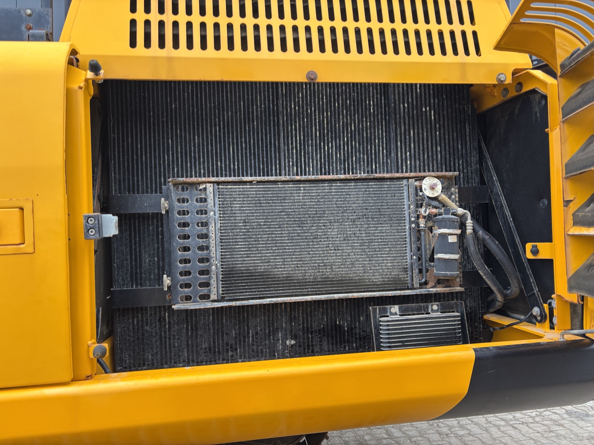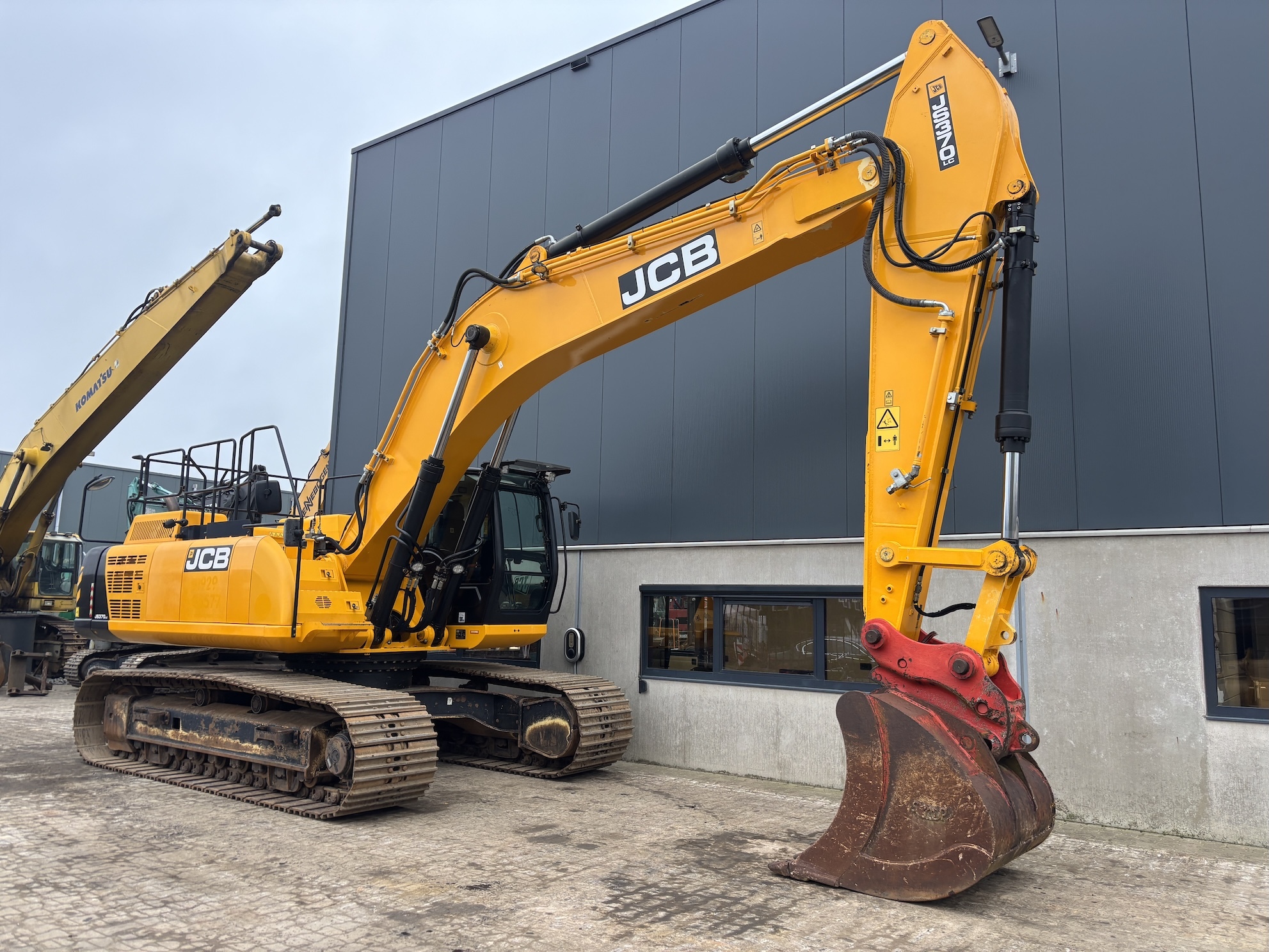This JCB JS370LC is equipped with a 6 cilinder water cooled turbo charged Mercedes OM936LA diesel engine (210) with just 6377 working hours on the service meter. Hydraulics for rotation and hammer functions, hydraulic quick hitch, teeth bucket, safety guards on top, extra work lights, operator manual, side view camera, airco, radio, electric diesel pump etc.Really nice JCB JS370, original paintwork, almost no scratches. Sprockets are poor but the chains are not too bad. Functions well, no errors. Please contract us for more information.