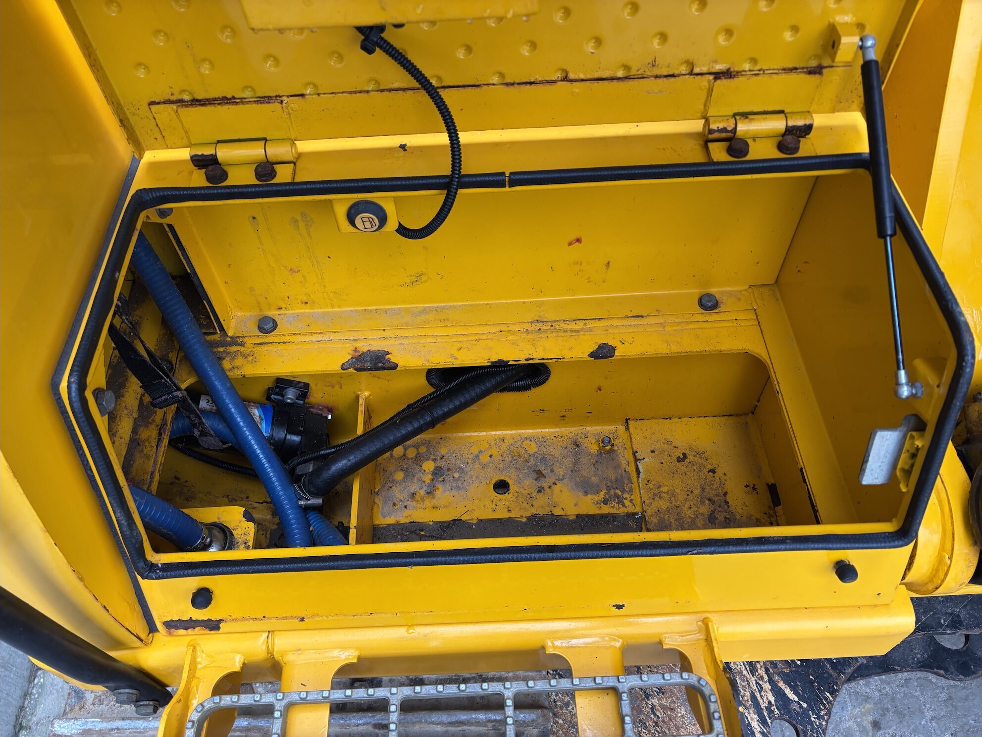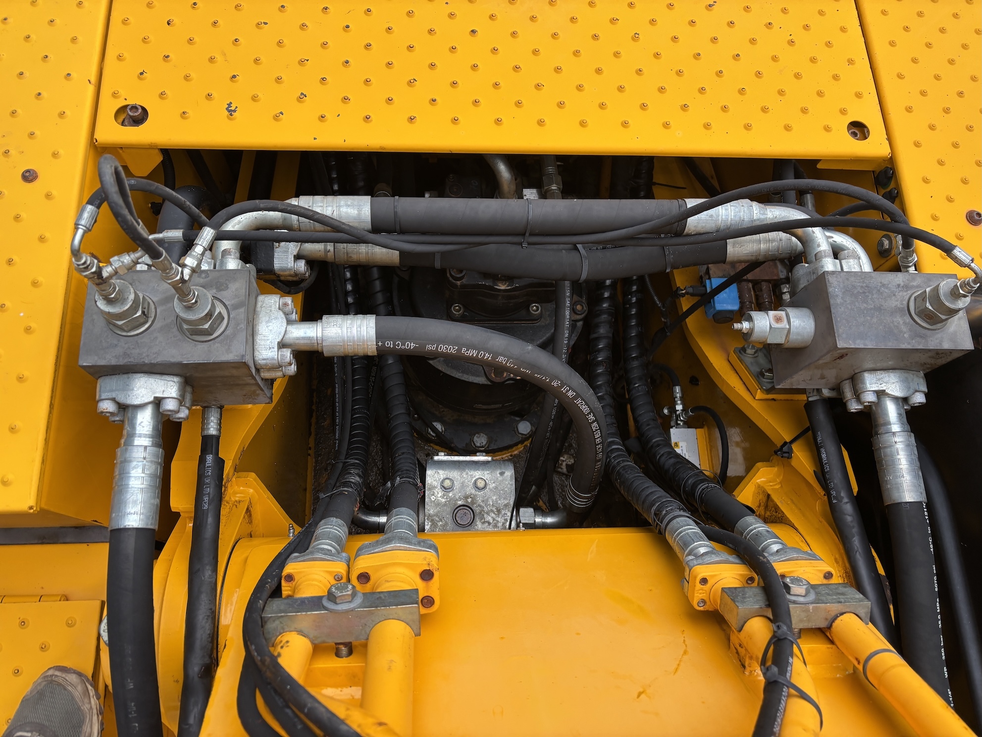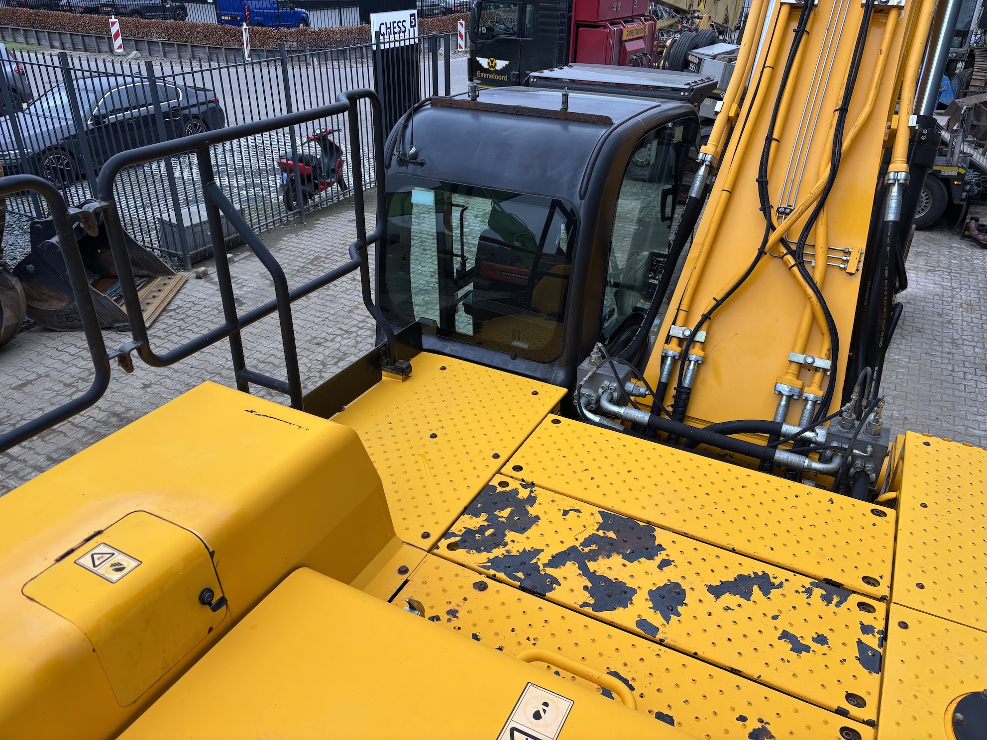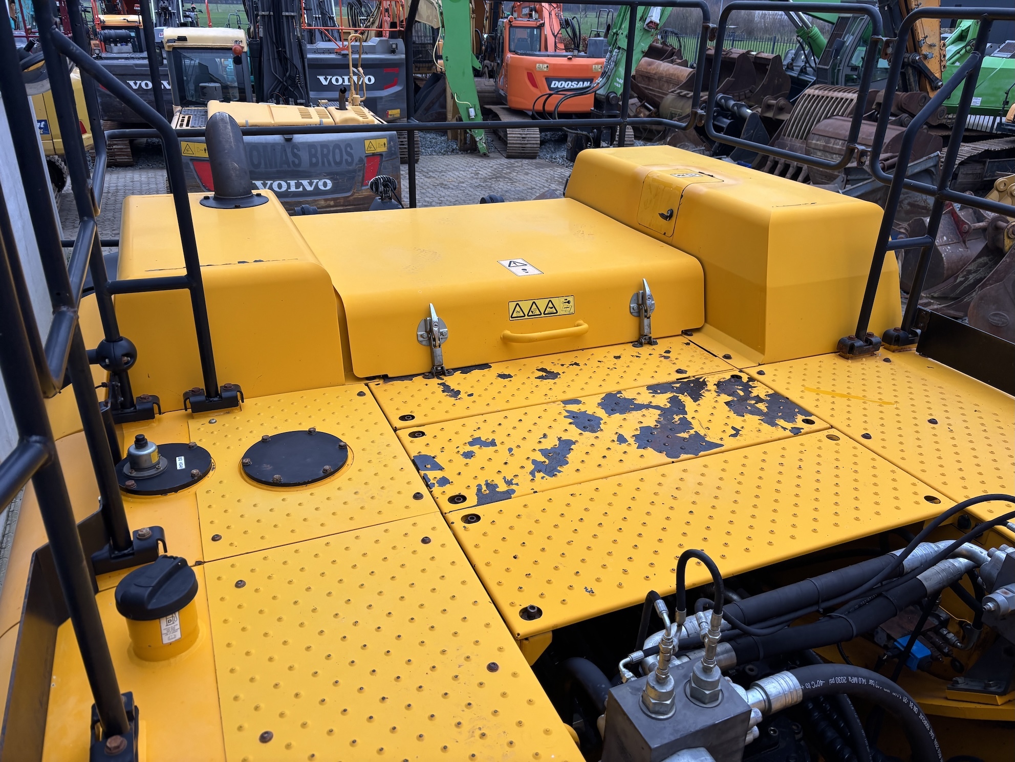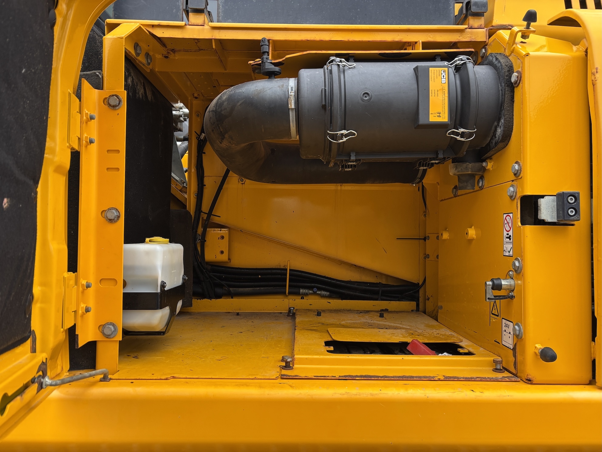 This JCB JS370LC is equipped with a 6 cilinder water cooled turbo charged Mercedes OM936LA diesel engine (210) with just 6377 working hours on the service meter. Hydraulics for rotation and hammer functions, hydraulic quick hitch, teeth bucket, safety guards on top, extra work lights, operator manual, side view camera, airco, radio, electric diesel pump etc.Really nice JCB JS370, original paintwork, almost no scratches. Sprockets are poor but the chains are not too bad. Functions well, no errors. Please contract us for more information.