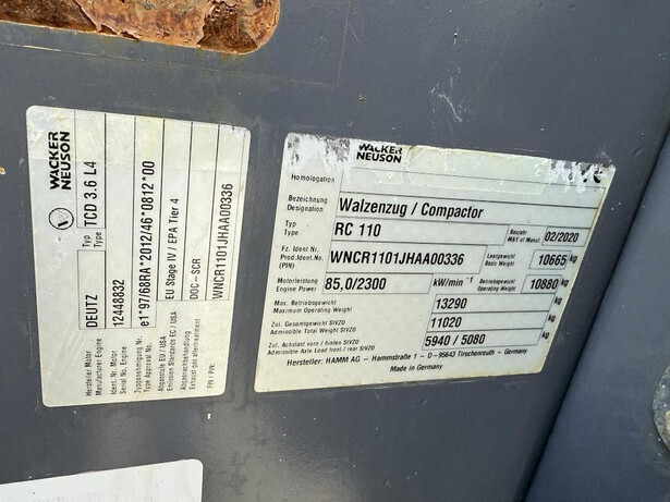 Perfect conditions – only 1.275 working hours – original paint - engine tier 4 - same model of Hamm H 10i