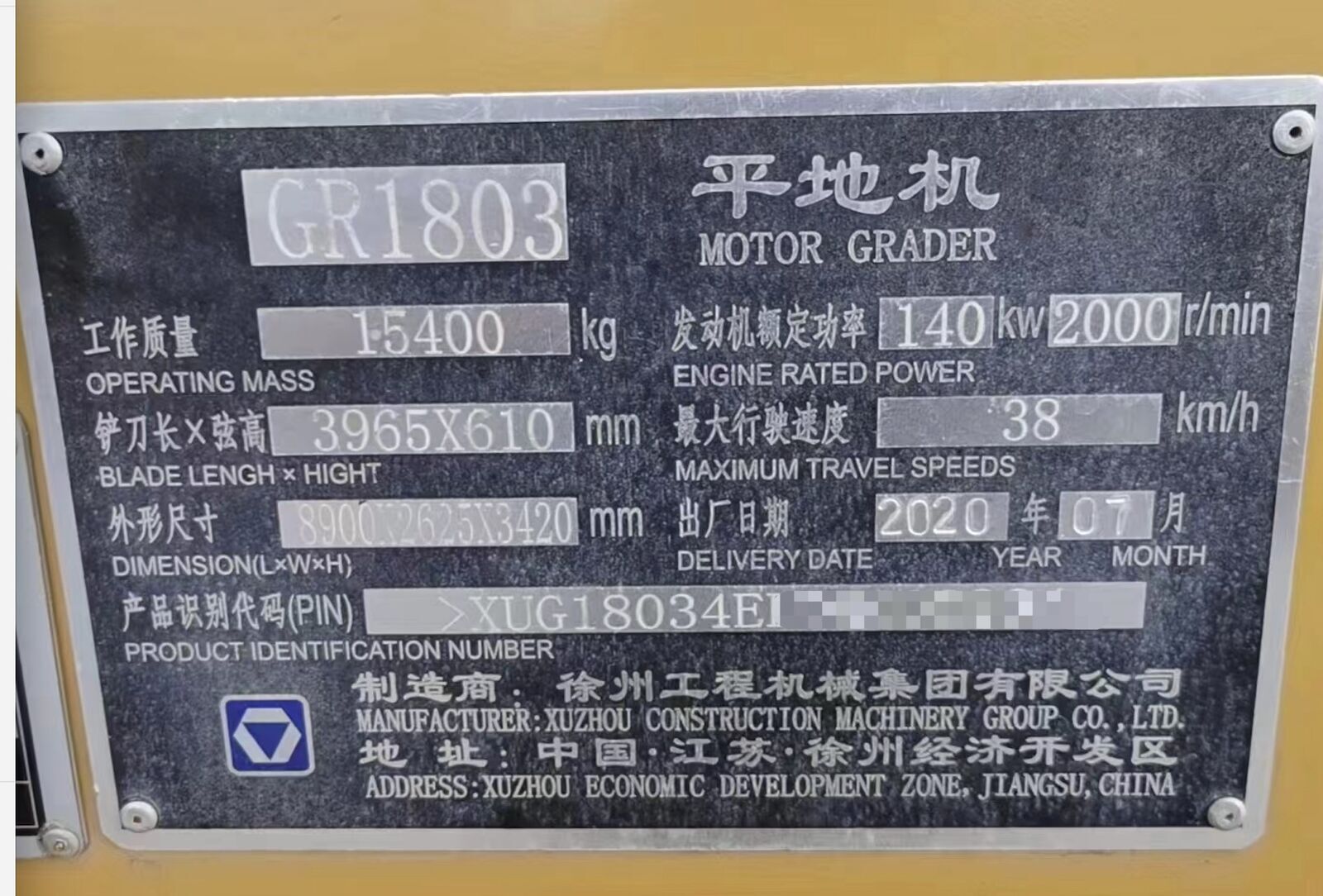 EN: XCMG Chinese Used 180HP Motor Grader GR180