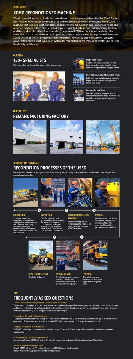 The price of XCMG reconditioned machine is far lower than that of the new one, but its performance and safety are not compromised thanks to XCMG's state-of-the-art processes and technologies.