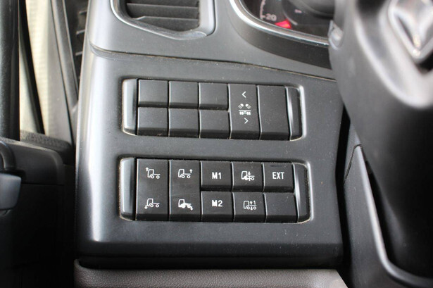 Options: Air conditioning Automatic climate control Bluetooth Digital dashboard Electric window controls Electric mirrors Electrically adjustable front seats Climate control Leather interior Multifunctional steering wheel Navigation system Radio Sleeping compartment Tachograph Low roof Full air suspension Construction up to 8000 mm BDF Bougy lift