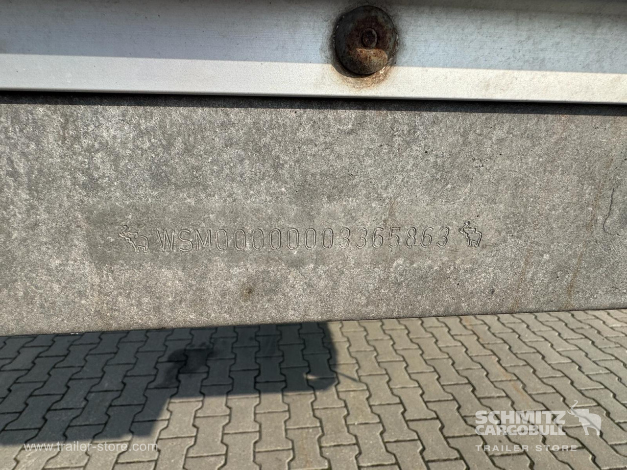 Remarks: **Safety**\\Rear underrun, Antilock Braking System ABS\\\\**Exterior**\\Air suspension, 1x15 and 2x7 pin plug, Antispray\\\\**Cargo securing**\\DIN EN 12642 (code XL) certificate\\\\**Brake system**\\Disc brake, Schmitz Cargobull\\\\**Floor**\\Wisadeck floor\\\\**Loading area**\\Length 13.620 mm, Width 2.480 mm, Height 2.780 mm, Volume 93 m³\\\\**Tyre sizes**\\1. Achse: 385/65 R22.5 , Tread depth: 11 mm / 11 mm, 2. Achse: 385/65 R22.5 , Tread depth: 11 mm / 11 mm, 3. Achse: 385/65 R22.5 , Tread depth: 11 mm / 11 mm\\\\**Other dimensions and weights**\\Wheel base: 7.700 mm\\\\----