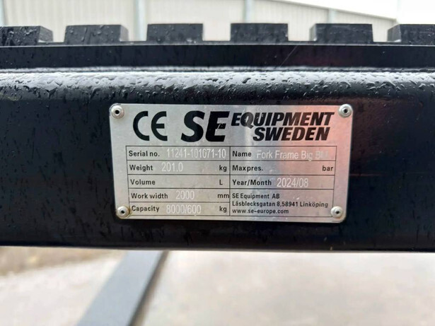 Unused wheelloader forks with Volvo / ISO / Lundberg quick coupling system suitable for Volvo L70. The length of the forks are 1.60 mtr. The width of the pallet frame is 2.00 mtr and the maximum capacity is 8000 kg.