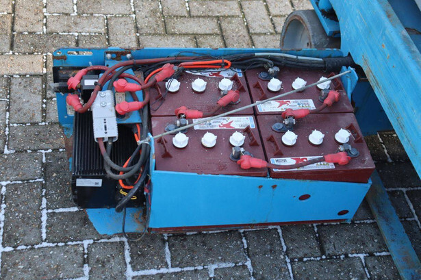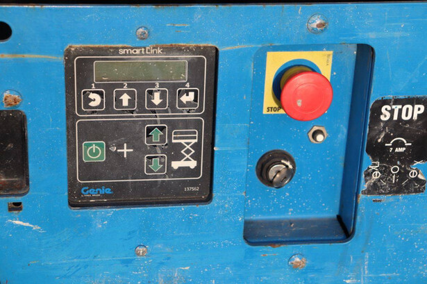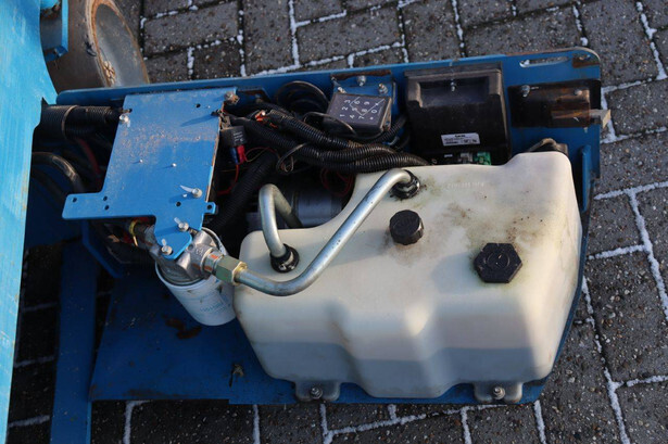 Brand: Genie Type: GS1932 Fuel: Electric Lifting capacity: 227 kg Working height: 7.85 m Chassis: Wheels Type: Scissor lift Tires: Solid tires Color: blue