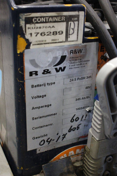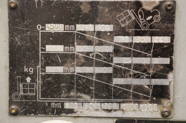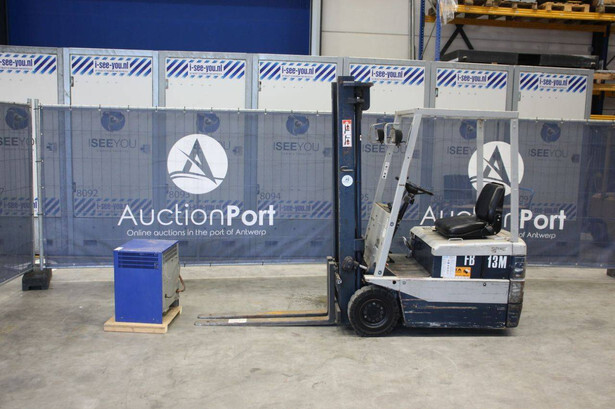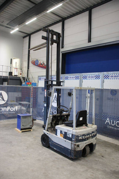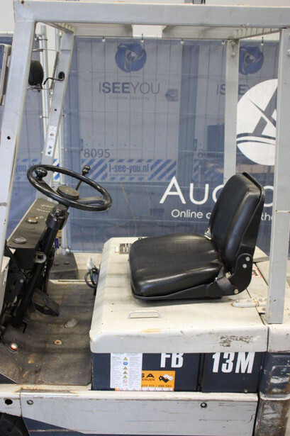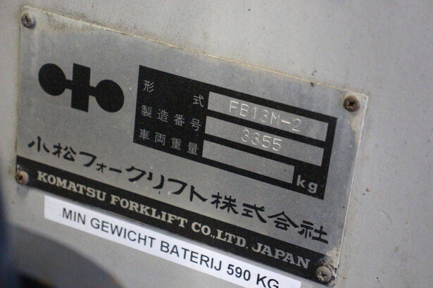 Brand: Komatsu Type: FB13M-2 Serial number: 3355 Year of construction: Not known Fuel: Electric Mast type: Duplex Sideshift: No Lifting capacity: 1250 kg Lifting height: 4500 mm Operating hours read: 4713 h Tires: Solid tires Color: blue
