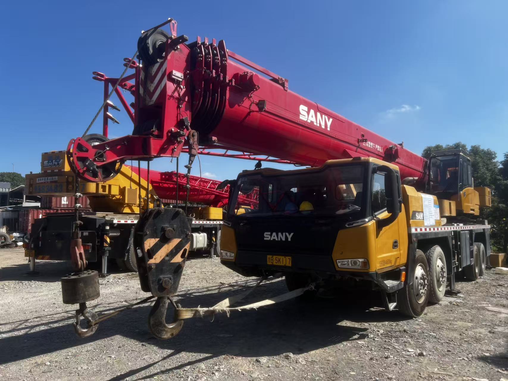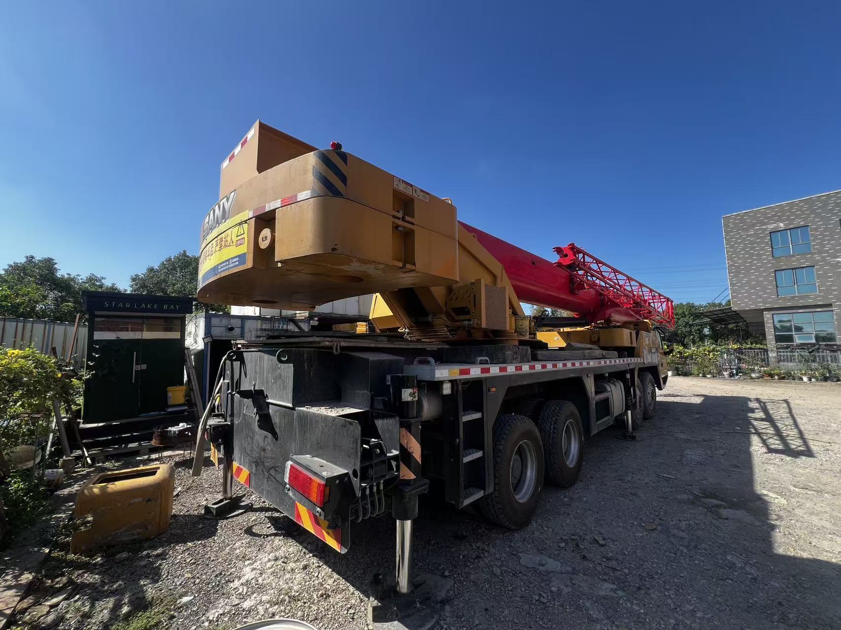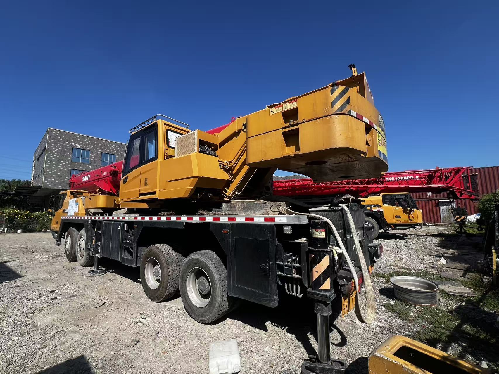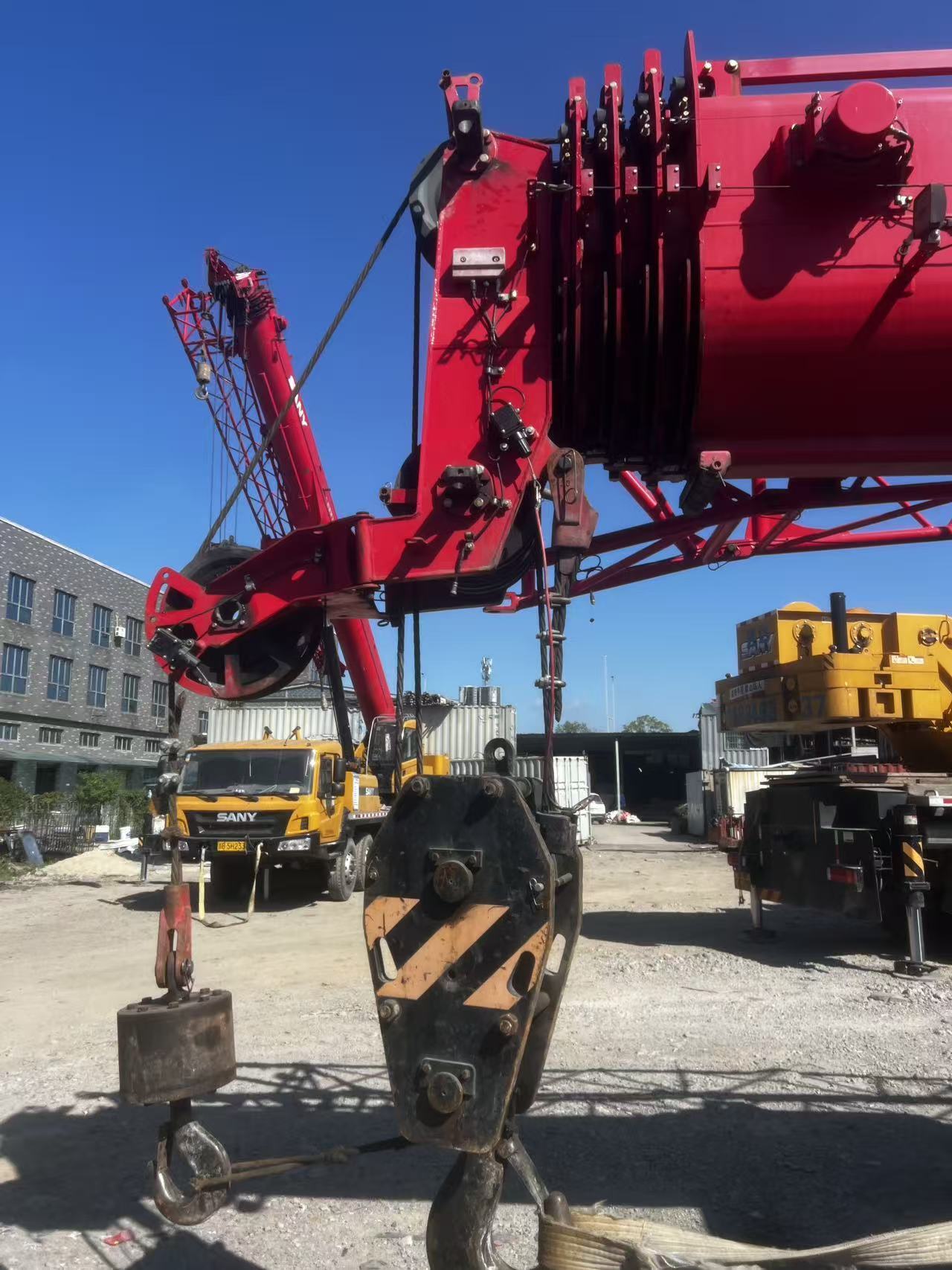 second hand stc550c5-8 sant 55t truck crane The main boom is made of high-strength structural steel and consists of five U-shaped cross-section girders. The full extended length of the main boom is 48.5 meters, and the total length of the main boom and the front boom is 64.5 meters. The maximum lifting height is 65 meters, and the maximum lifting moment is 2386 kN·m (with a counterweight of 15.7 tons).