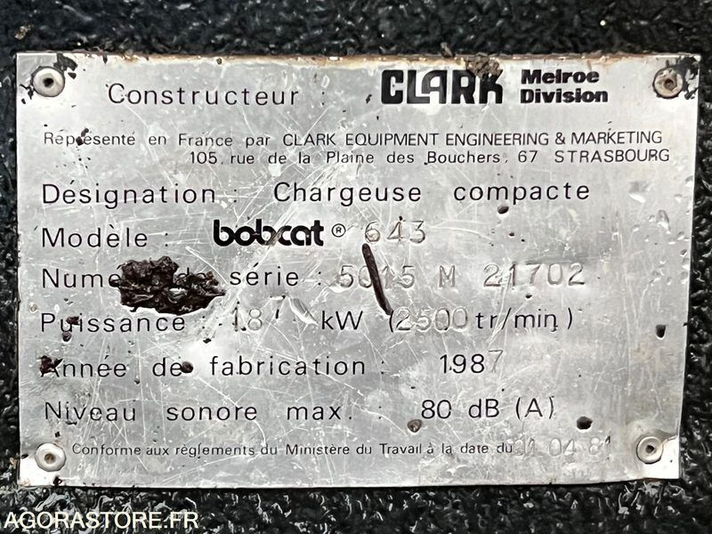 Bobcat 643 Weight: 1650 Fuel: diesel FR: Type de véhicule Mini chargeuse