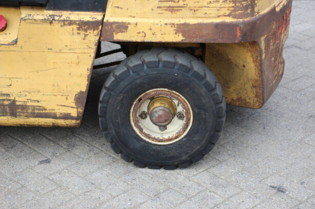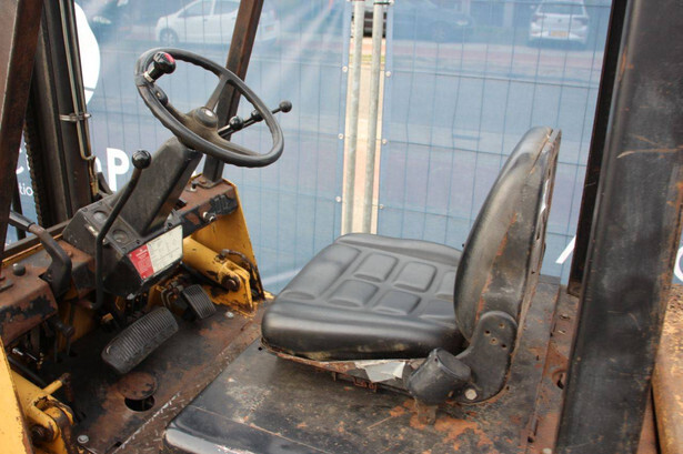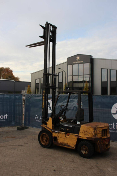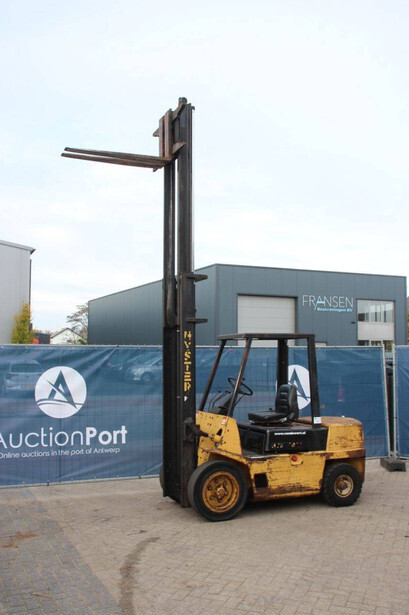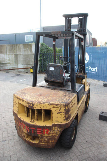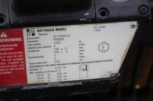 Brand: Hyster Type: H3.00XL Serial number: B177B2955L Year of construction: 1990 Fuel: Diesel Mast type: Duplex Sideshift: No Lifting capacity: 2910 kg Lifting height: 4150 mm Operating hours read: Not known Machine weight: 4360 kg Tires: Solid tires Color: yellow
